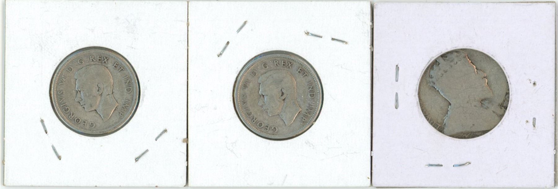 Lotof 3 ( 1906, 1938-39) canadian silver quarters