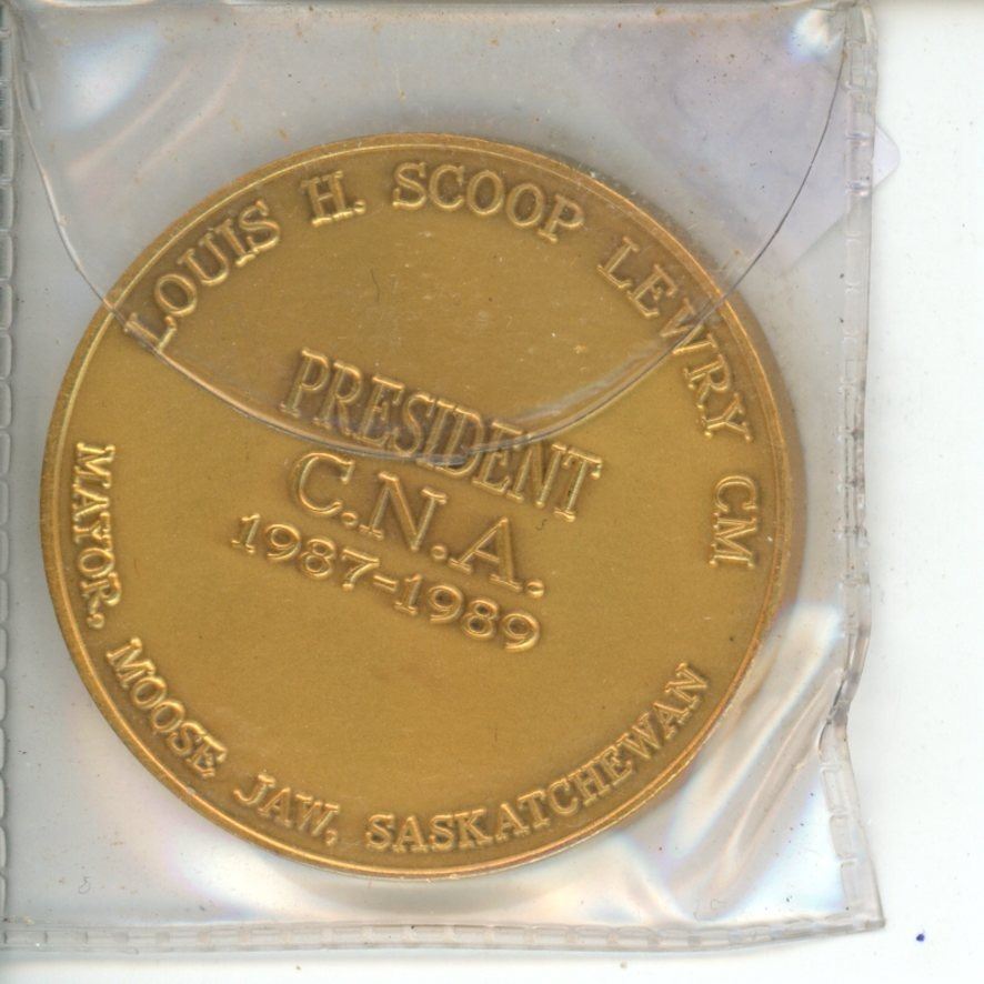 Louis “Scoop” Lewry CNA Presidential medal in brass. Lewry was president of the CNA from 1987 – 1989. BU.