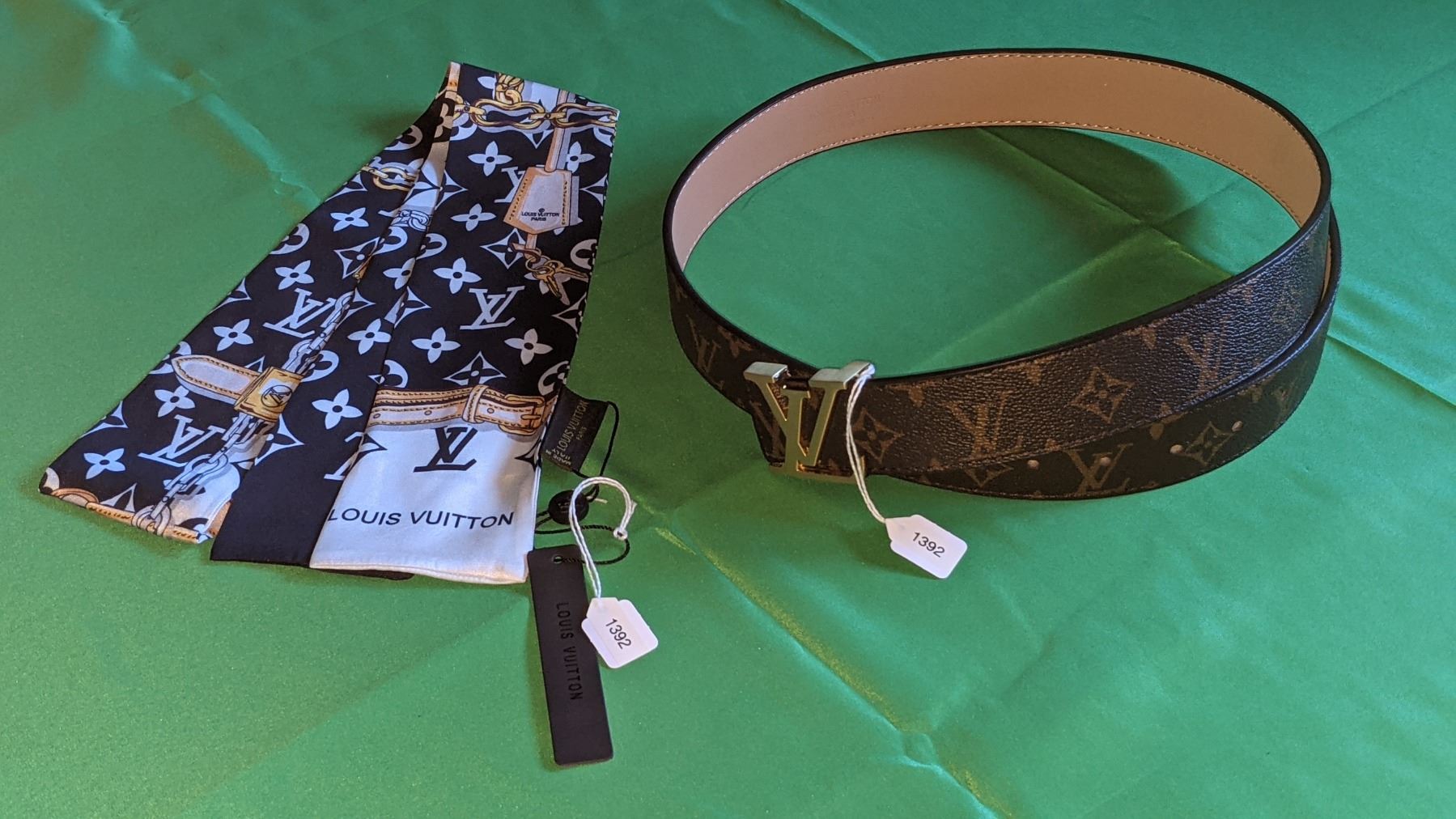 The Louis Vuitton Bandeau in Monogram Confidential, and the Louis Vuitton Initiales in Monogram. Minor wear on each. Used, in great condition.