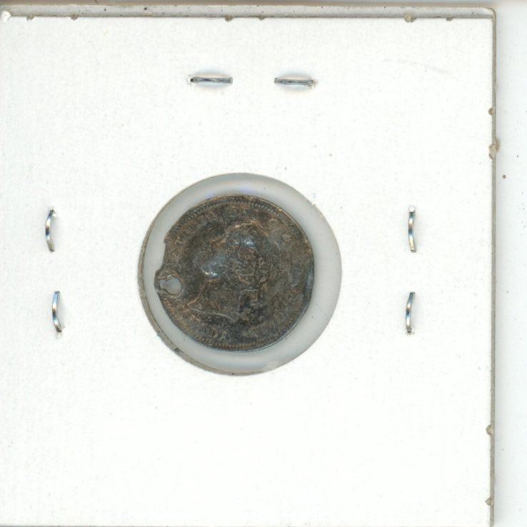 Love Token. EV engraved on Canadian Victorian silver 5 cents. Holed for suspension.