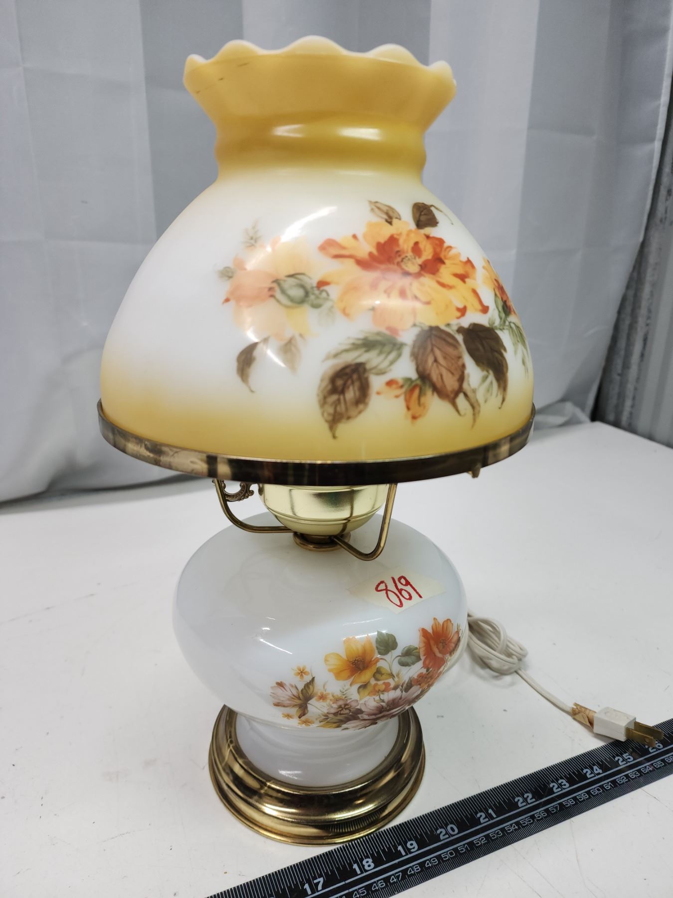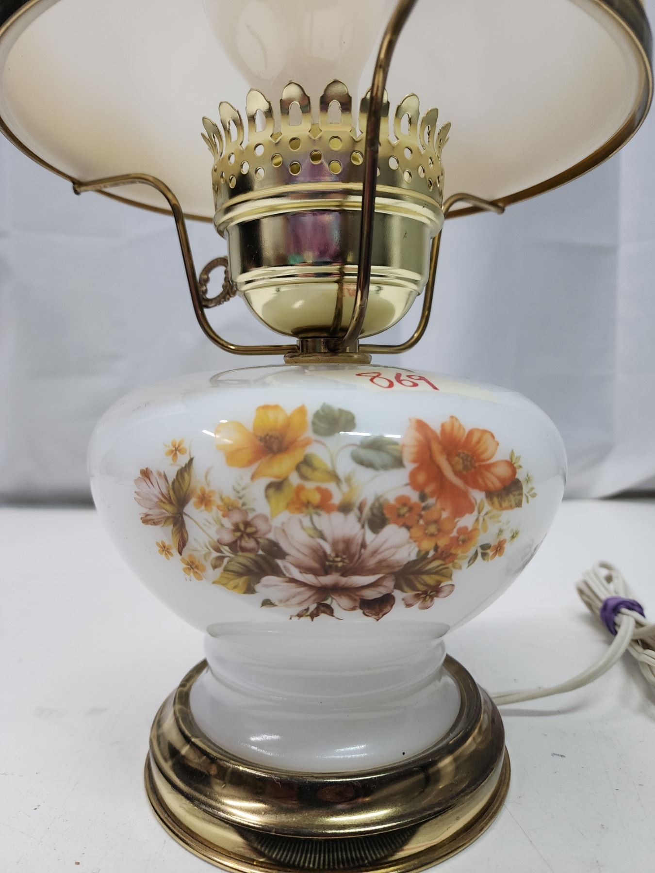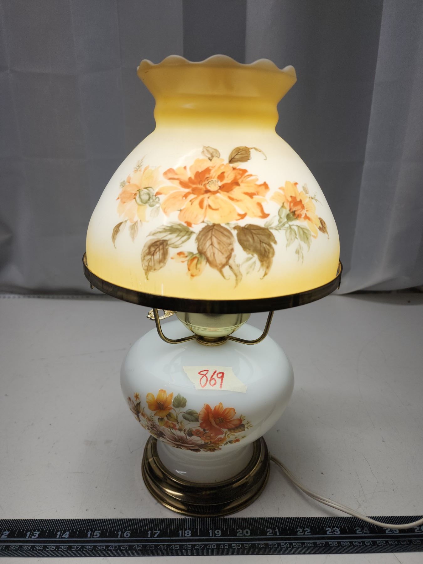 Lovely glass floral lamp, w/ matching glass shade - 14.5"H
