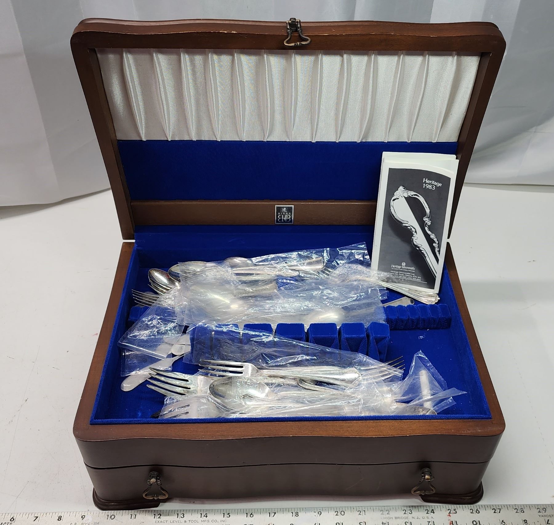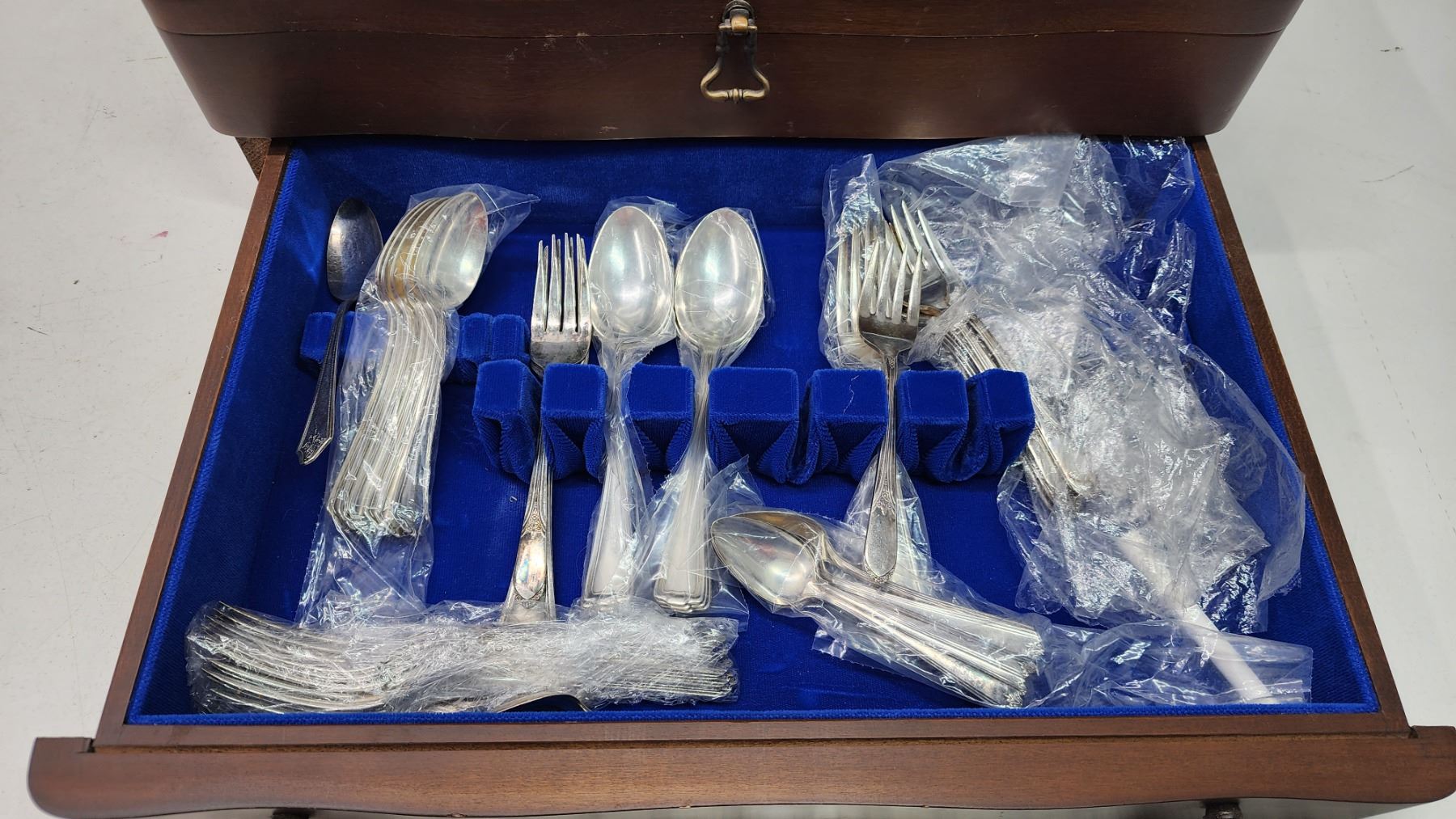Lovely wooden case, filled with cutlery - 17"W x 7"H x 12"D