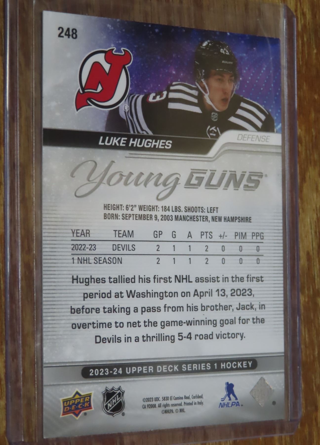 Luke Hughes Young Guns 2023-24 UD #248
