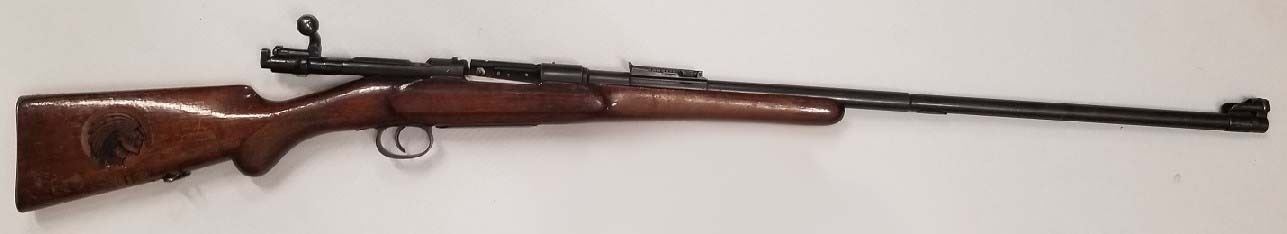 M96 Bolt Action Rifle, 8mm Caliber, With Carved Indian Head In The Stock