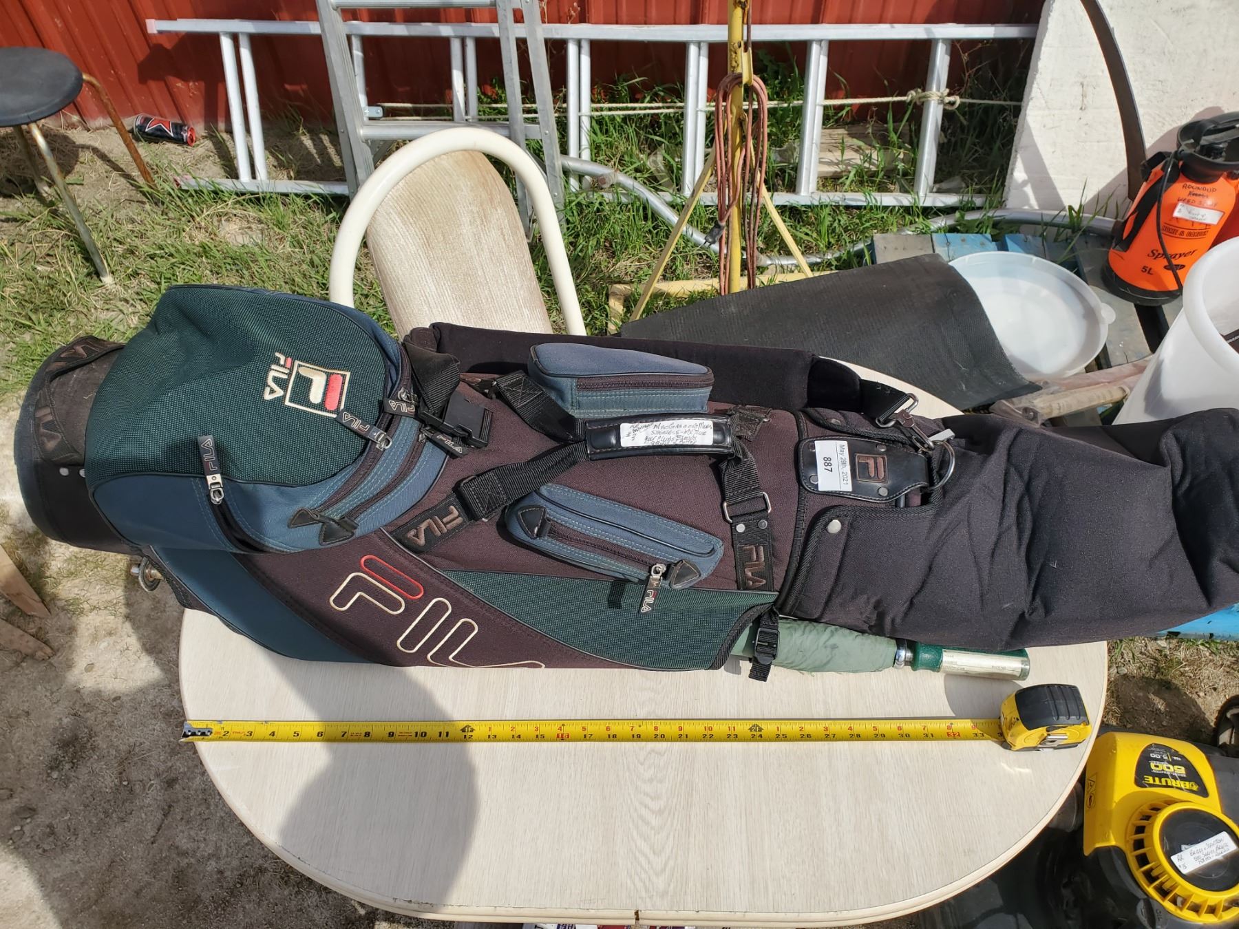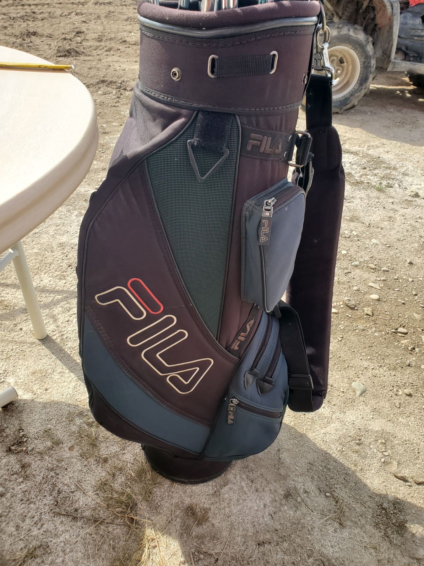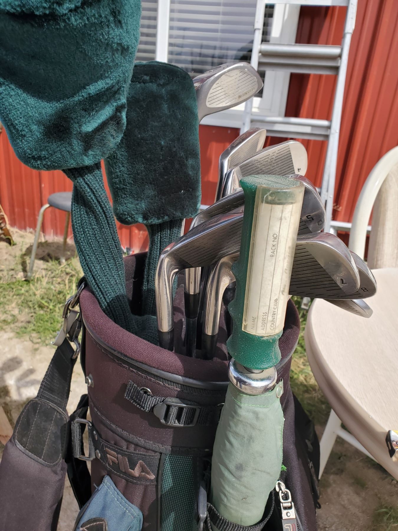 3 WOODS, 9 IRONS, PUTTER, BAG & UMBRELLA