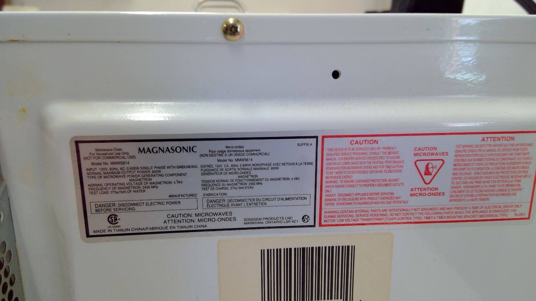 MAGNASONIC MICROWAVE OVEN