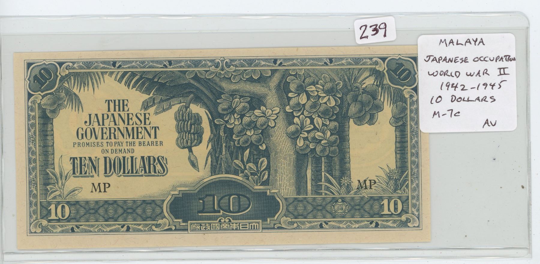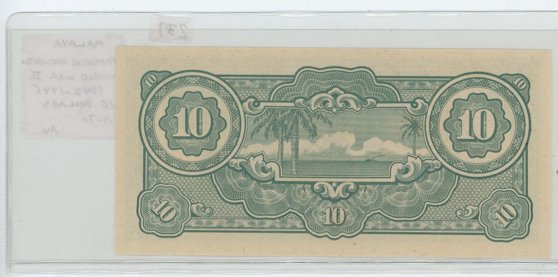 MALAYA. JAPANESE OCCUPATION DURING WORLD WAR II. 1942-1945 $10 NOTE. M-7C. AU.