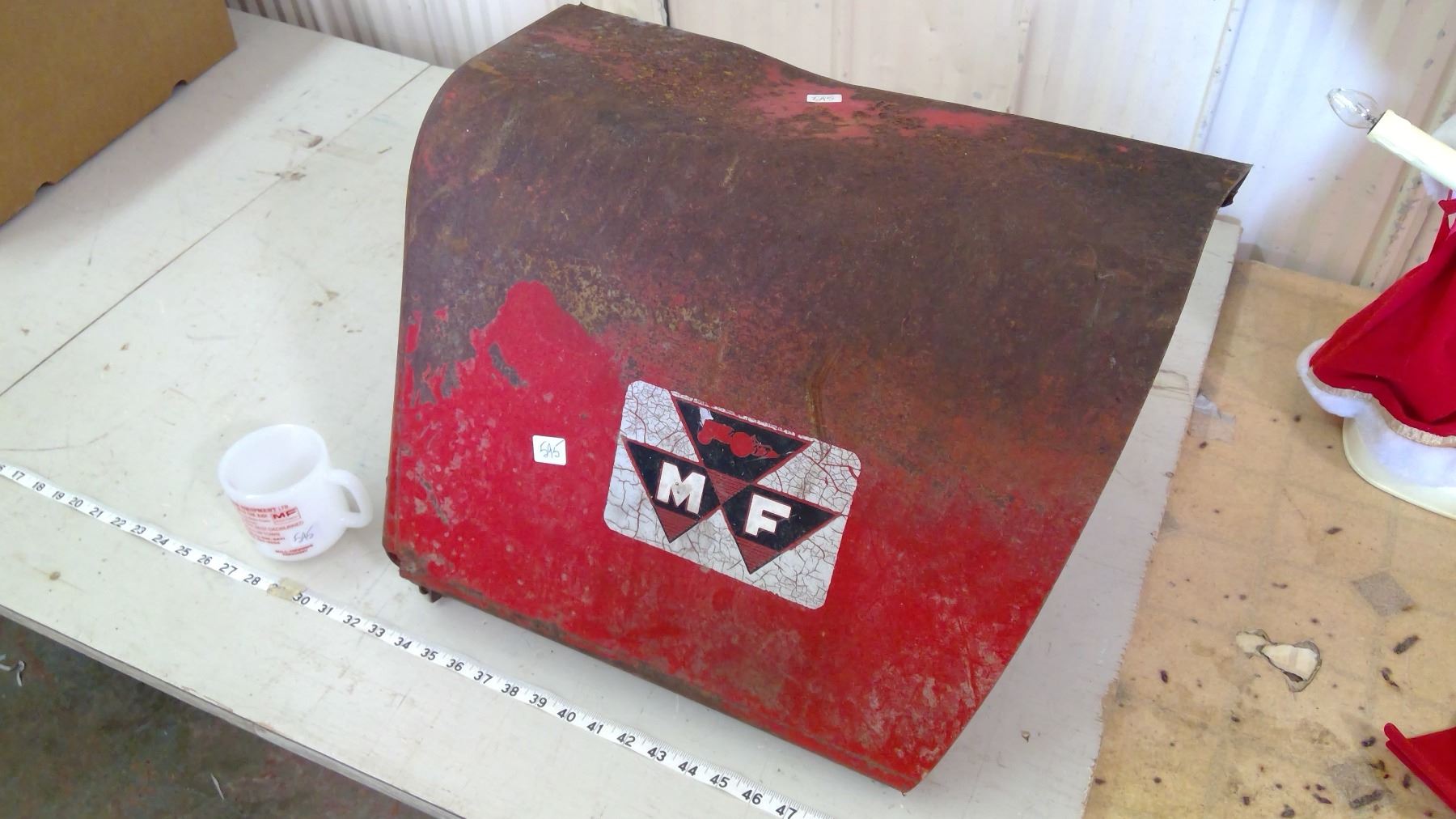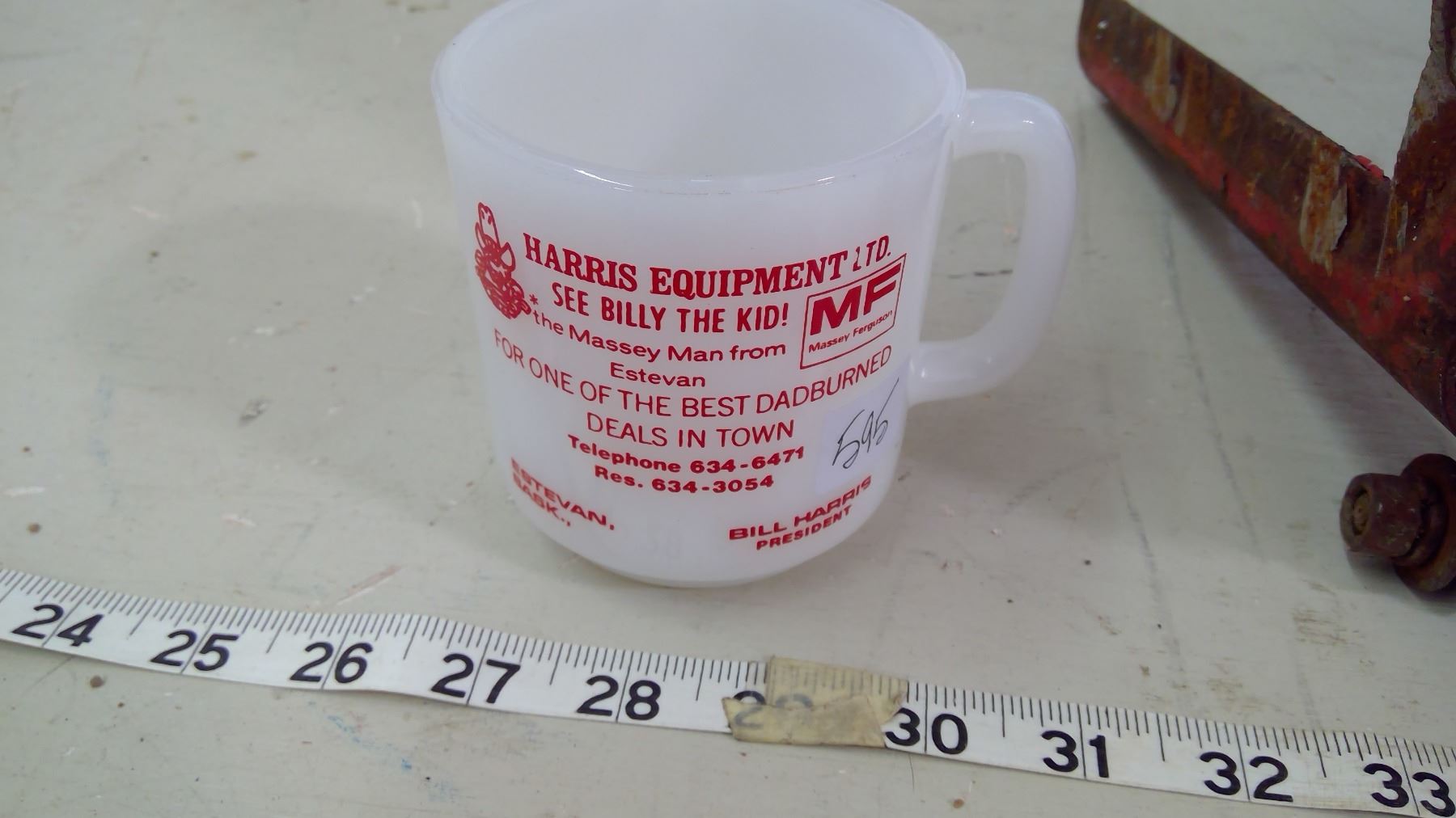 MASSEY FERGUSON COFFEE MUG AND METAL CUT-OUT FROM COMBINE