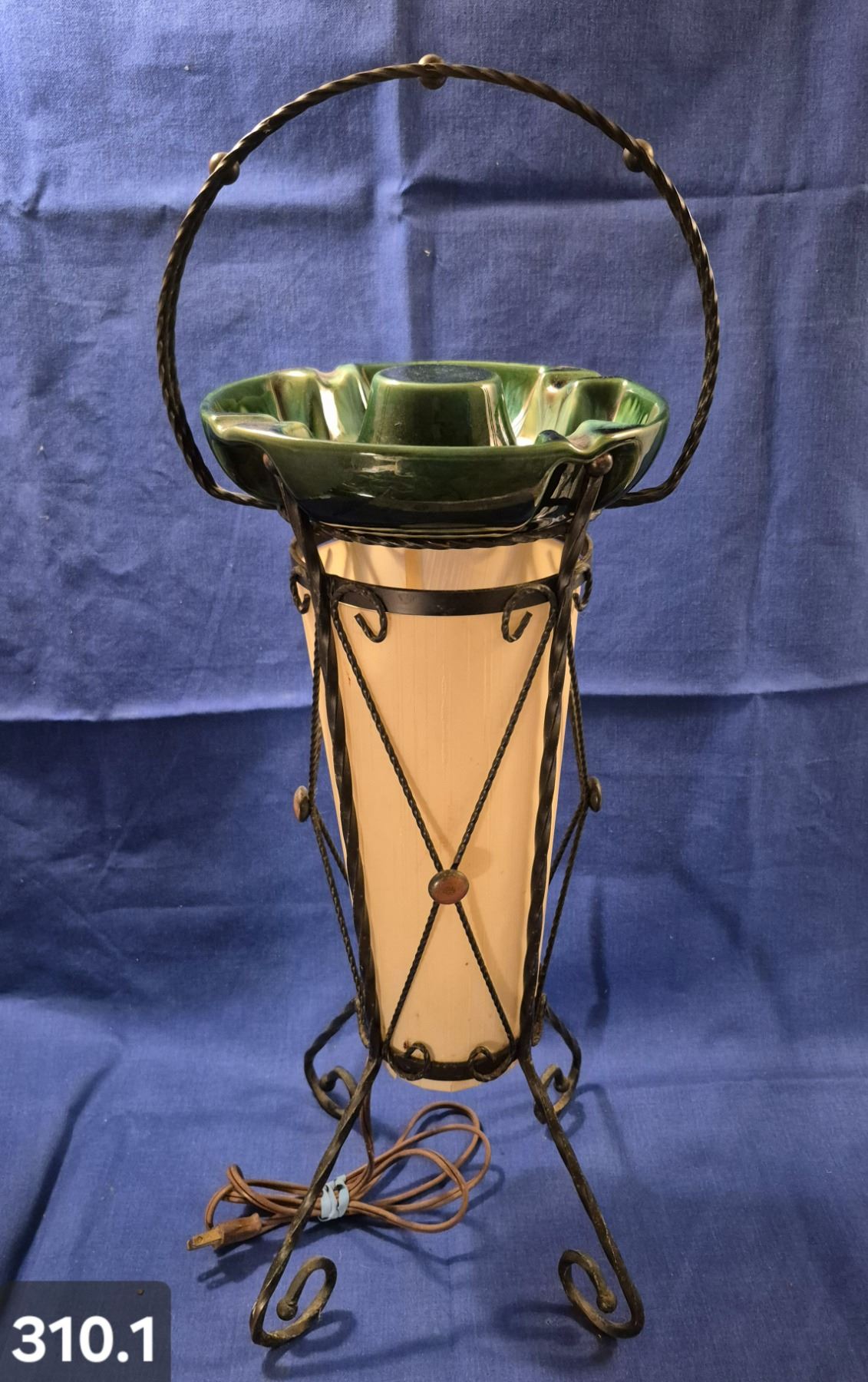 MCM Fiberglass and Wrought Iron Lamp, ashtray - great condition