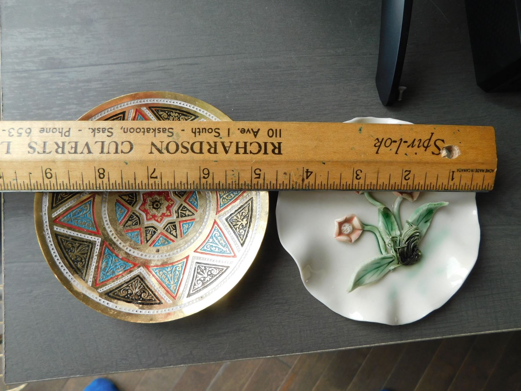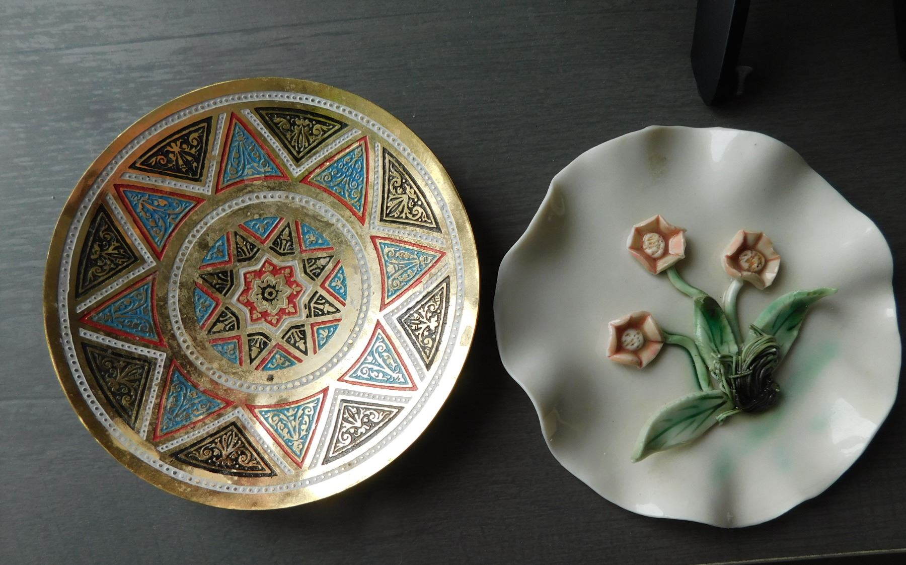 MCM YAISED TULIP WALL PLAQUE 4”, AND INDIA BRASS TRINKET DISH
