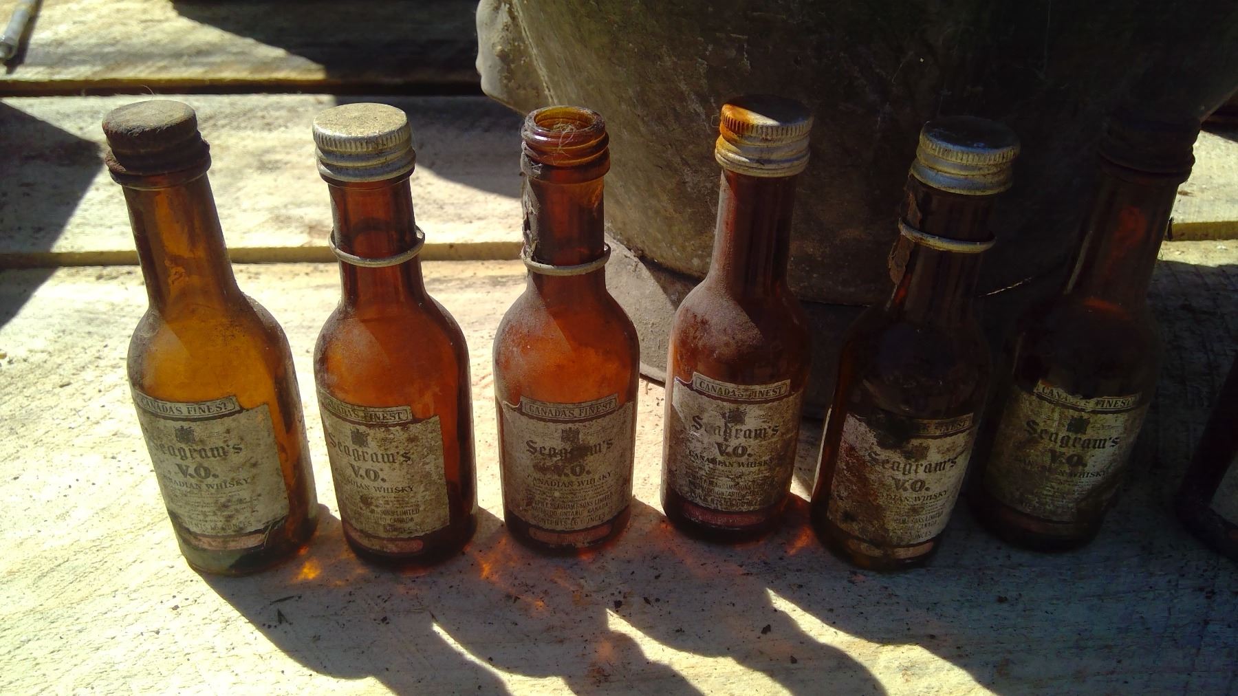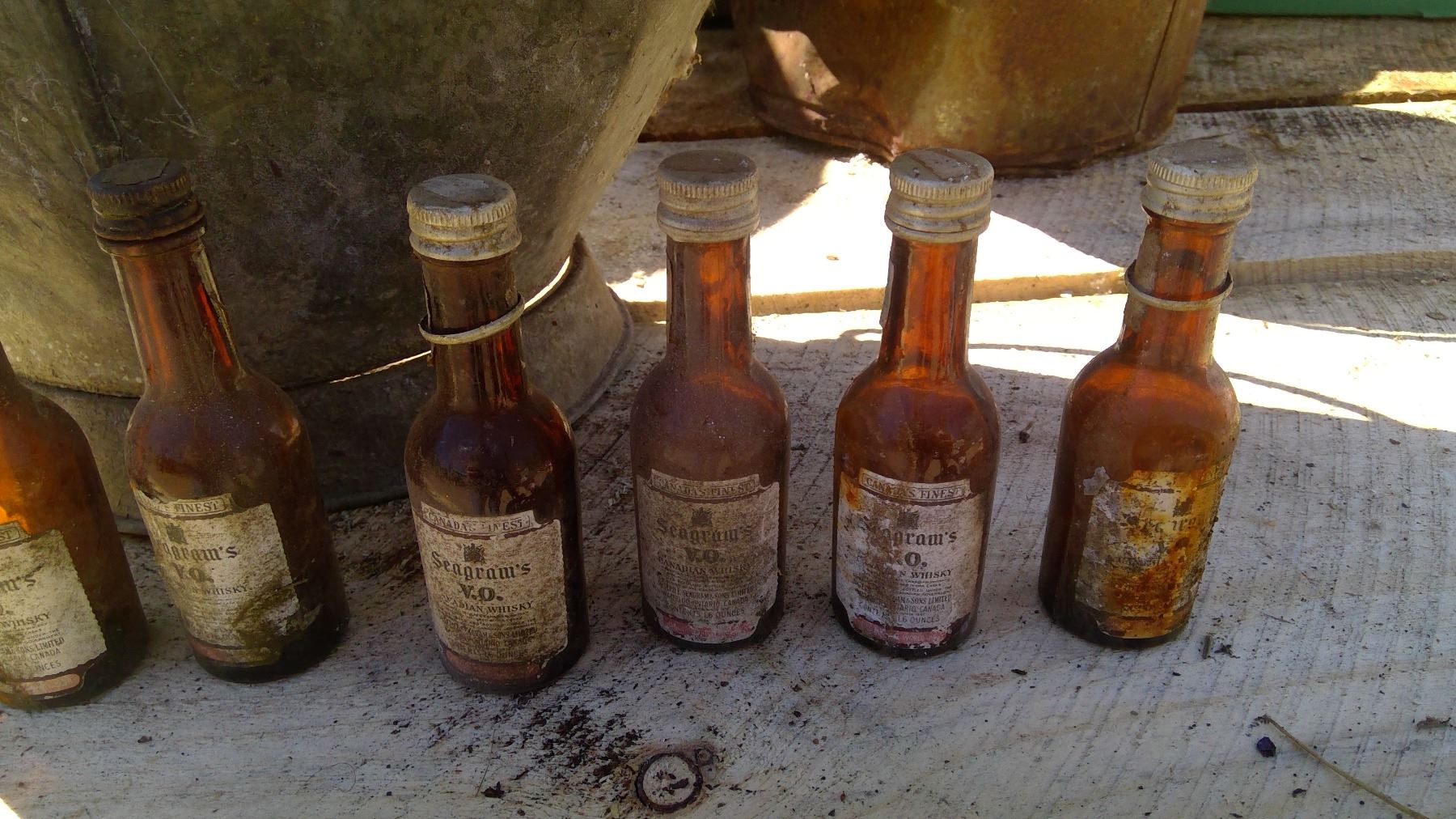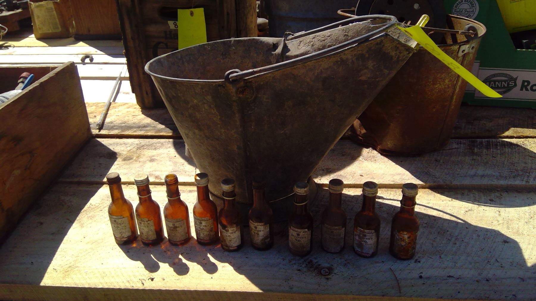 METAL BUCKET WITH 10 MINI GLASS BOTTLES