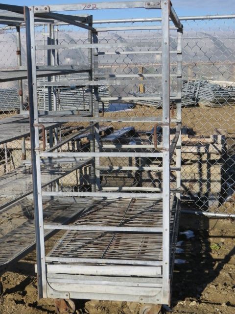 METAL RACK, C/W WHEELS & SHELVES, 70"X29"