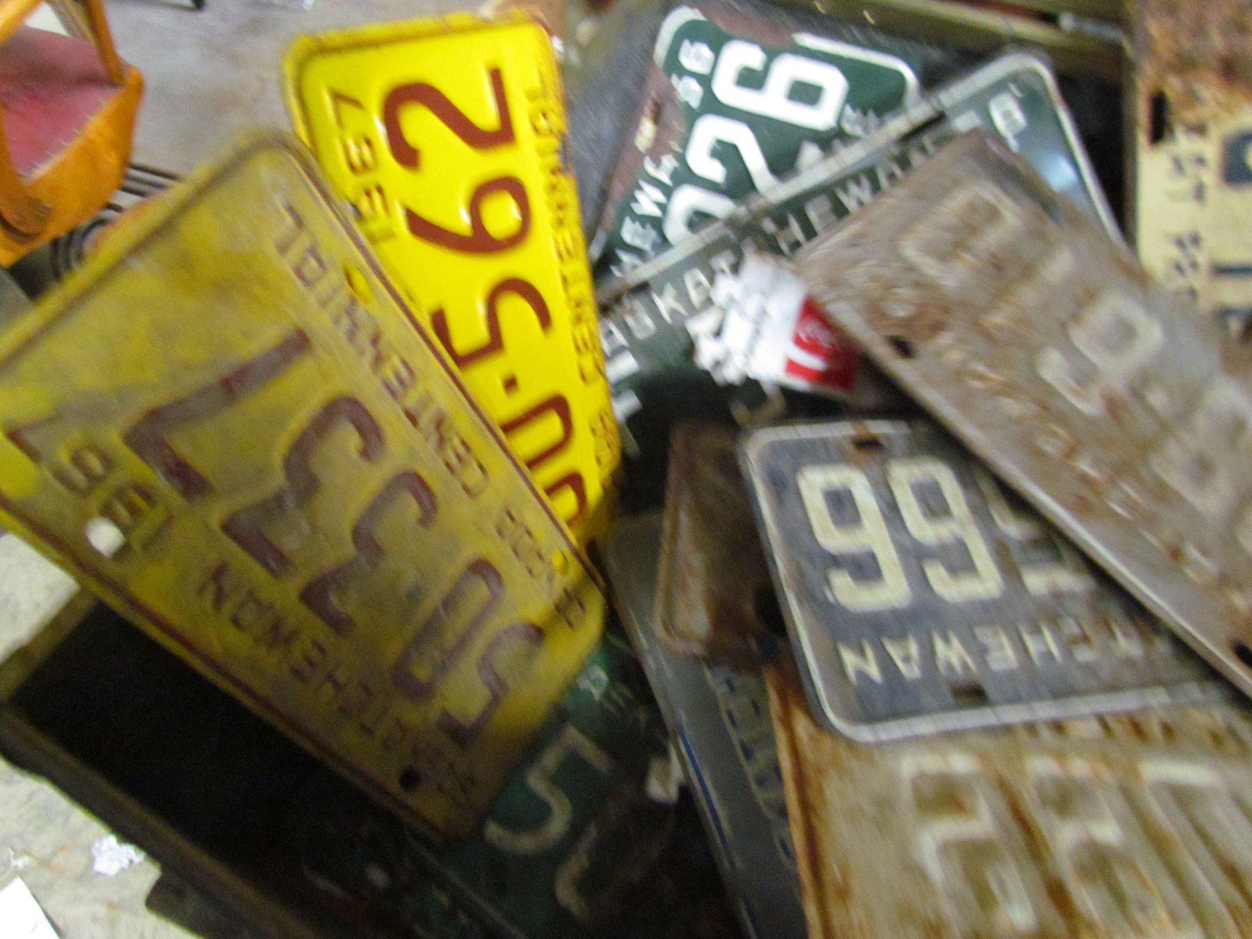 METAL TRUNK (FULL OF LICENSE PLATES) *OVER 75 PCS* (1933, 1949, 5Os, 60s, 70s, etc) + 3 METAL COKE P