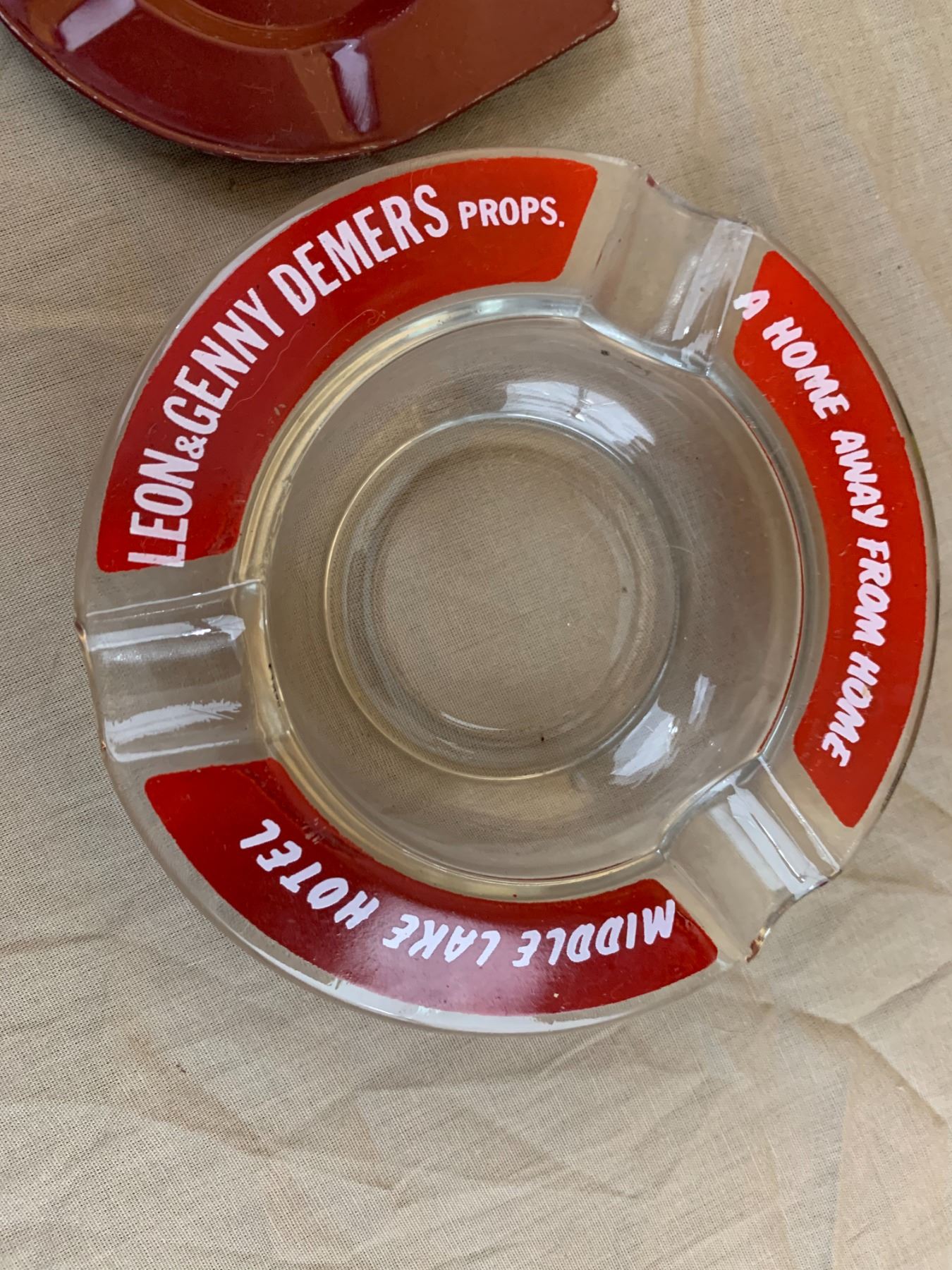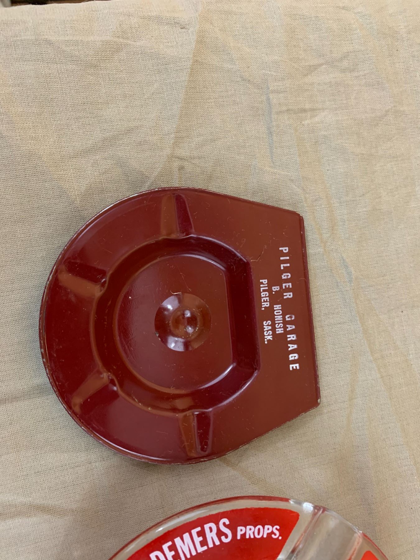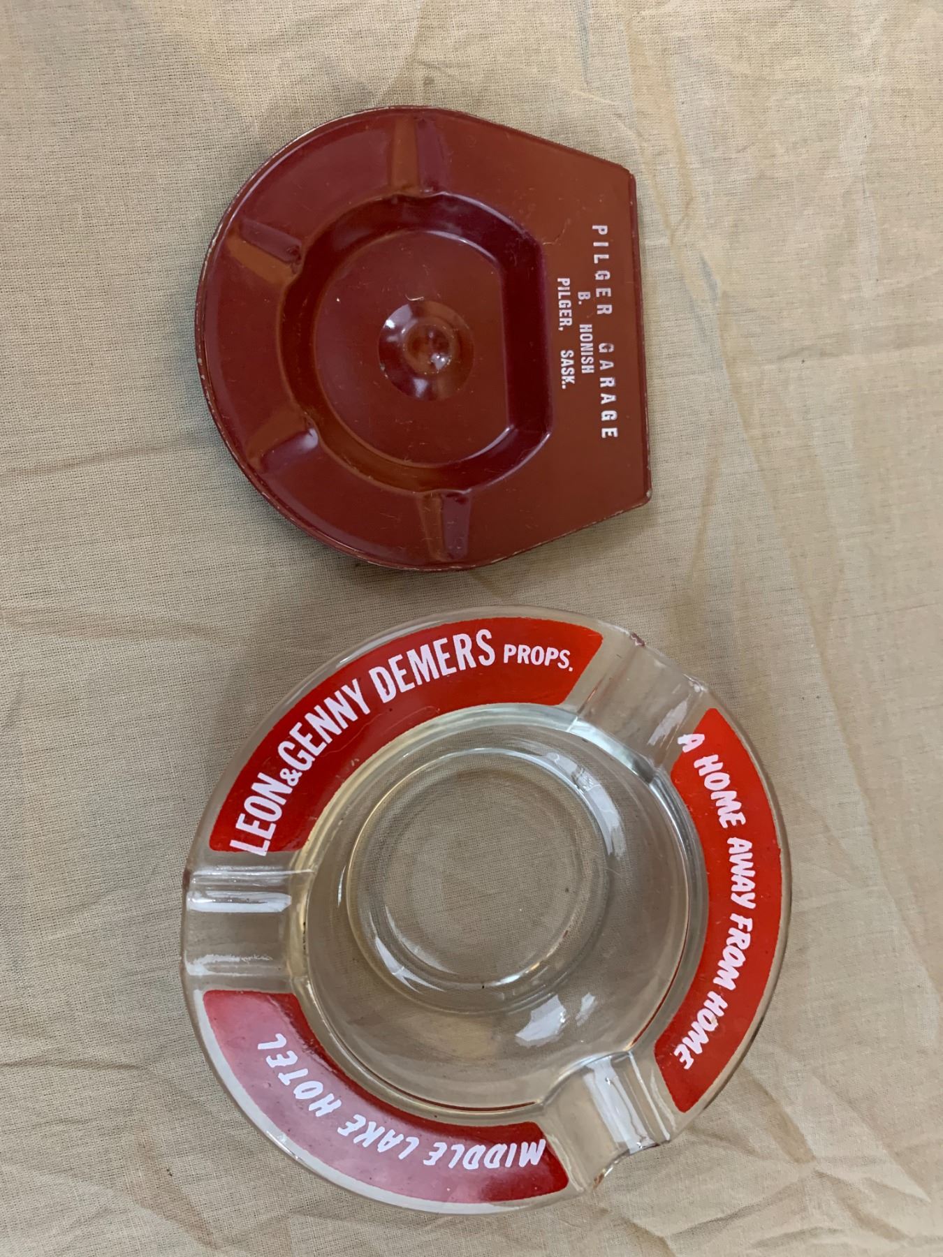 MIDDLE LAKE AND PILGER SASK ADVERTISING ASHTRAY