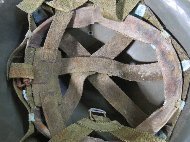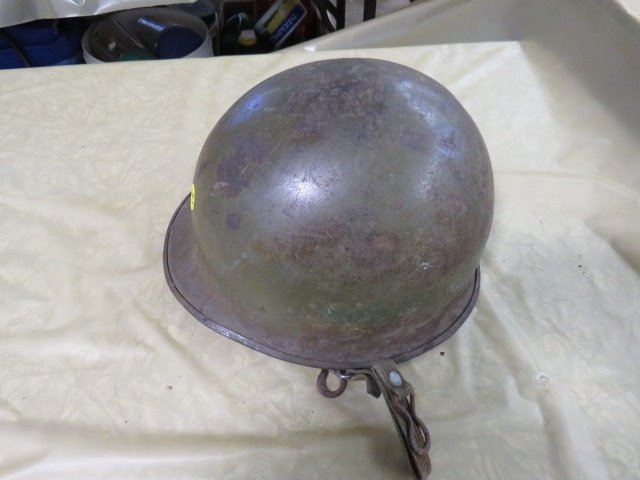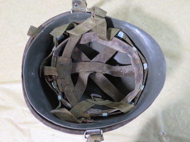 MILITARY HELMET WITH LINER (FEDUR ZARAGOZA ESPANA IS STAMPED ON INSIDE OF LINER--SPAIN?)