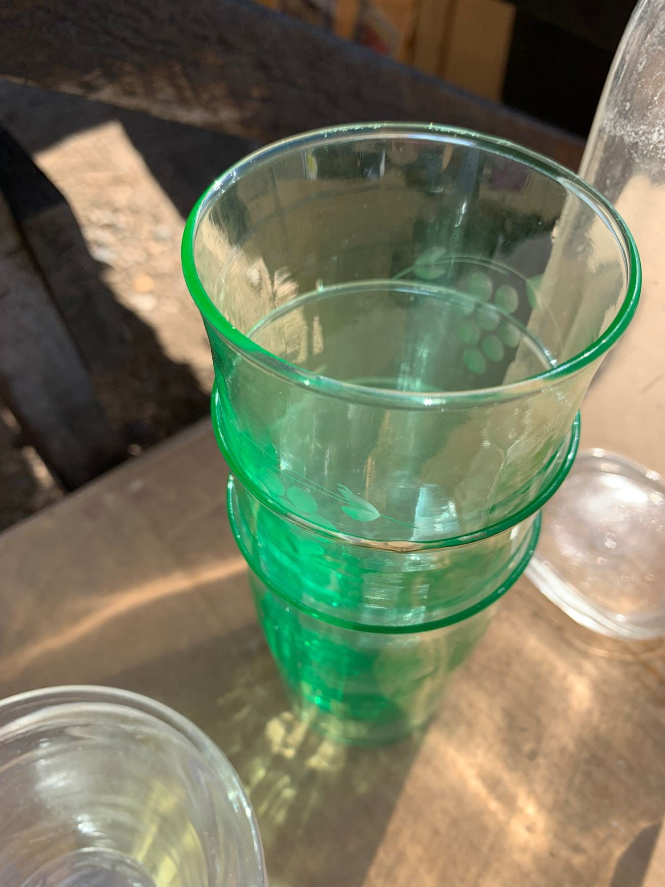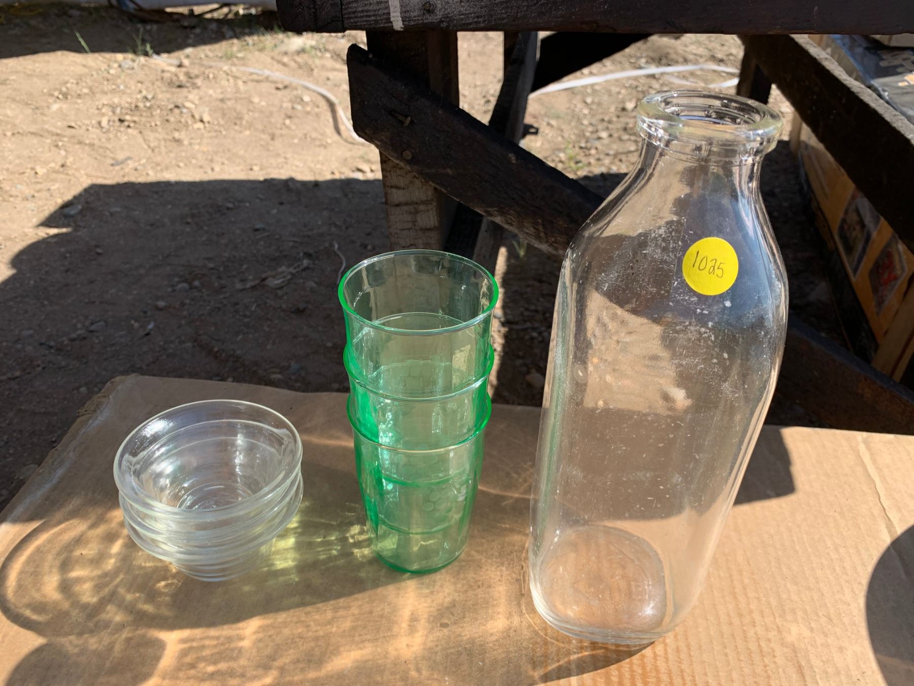 MILK JUG, GLASSES, SMALL GLASS BOWLS