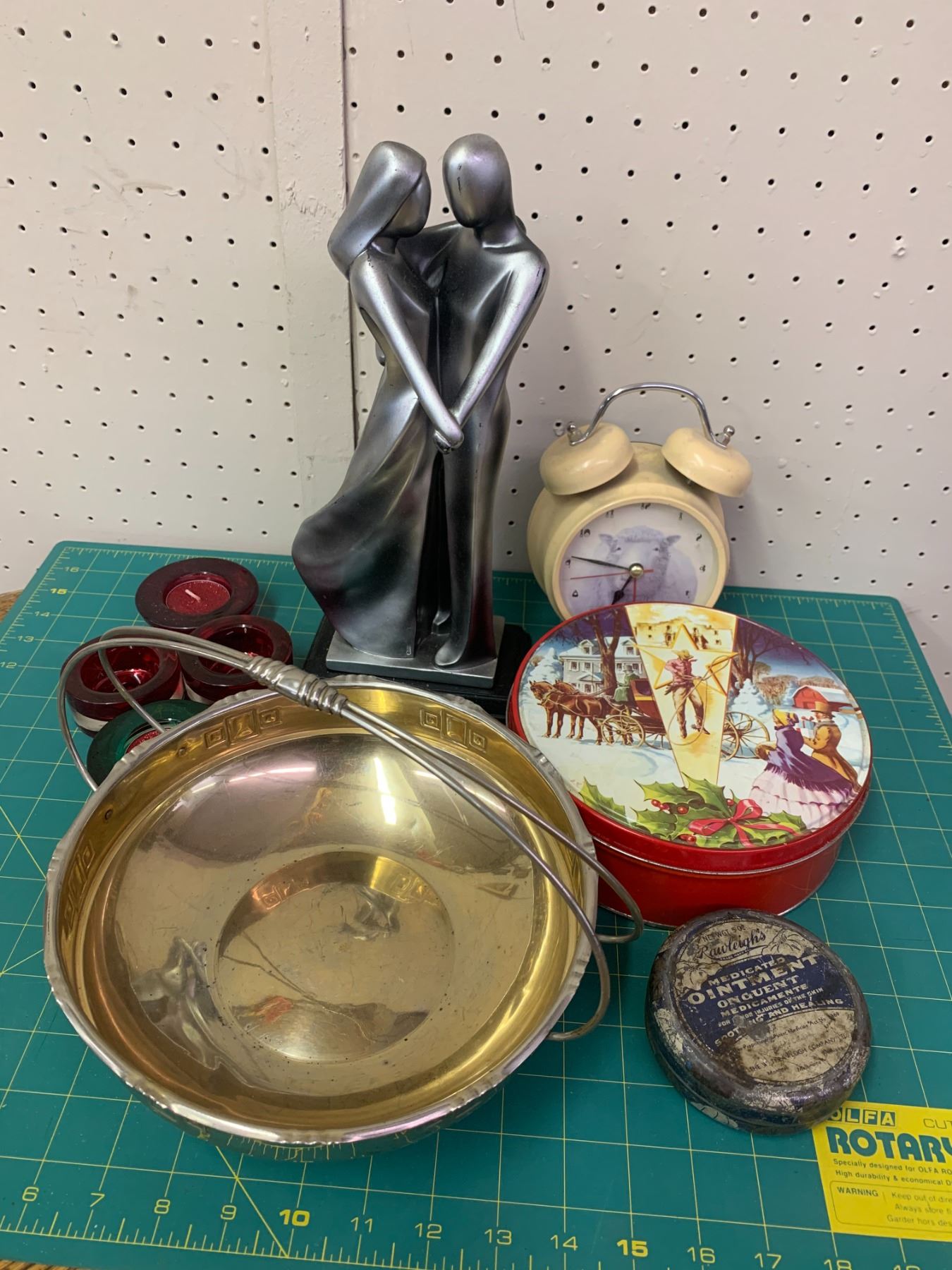 MISC LOT CANDLE HOLDERS CLOCK ETC