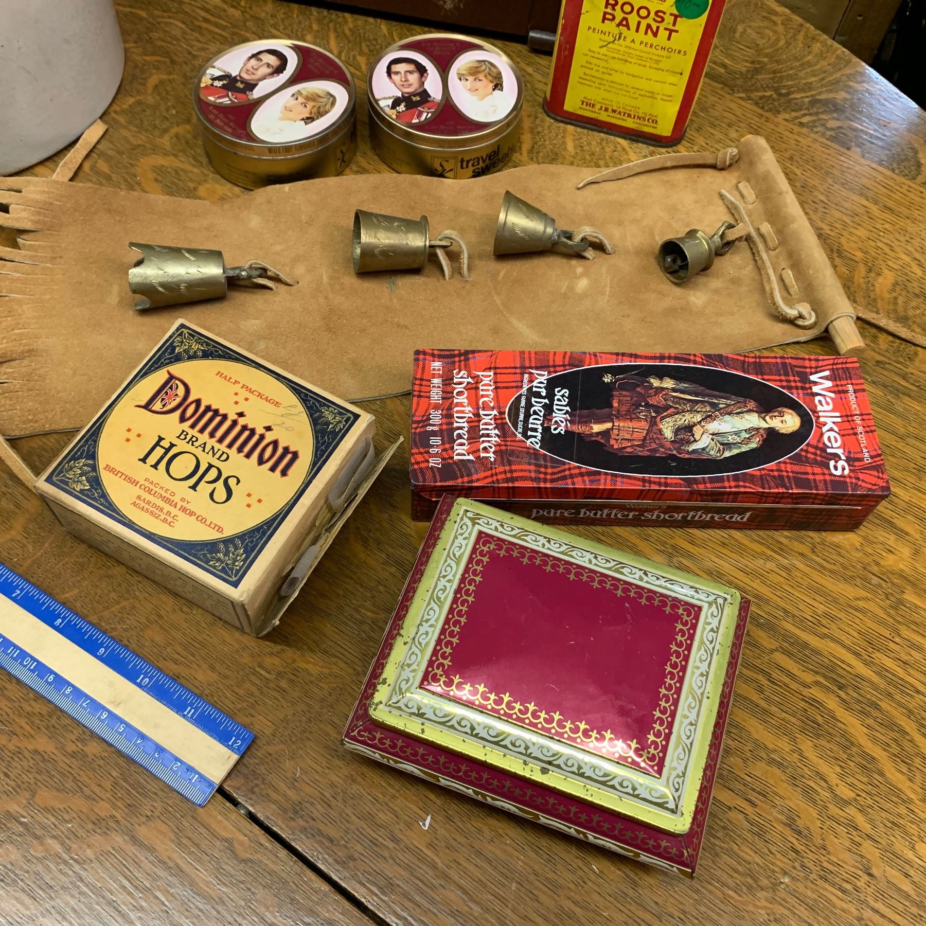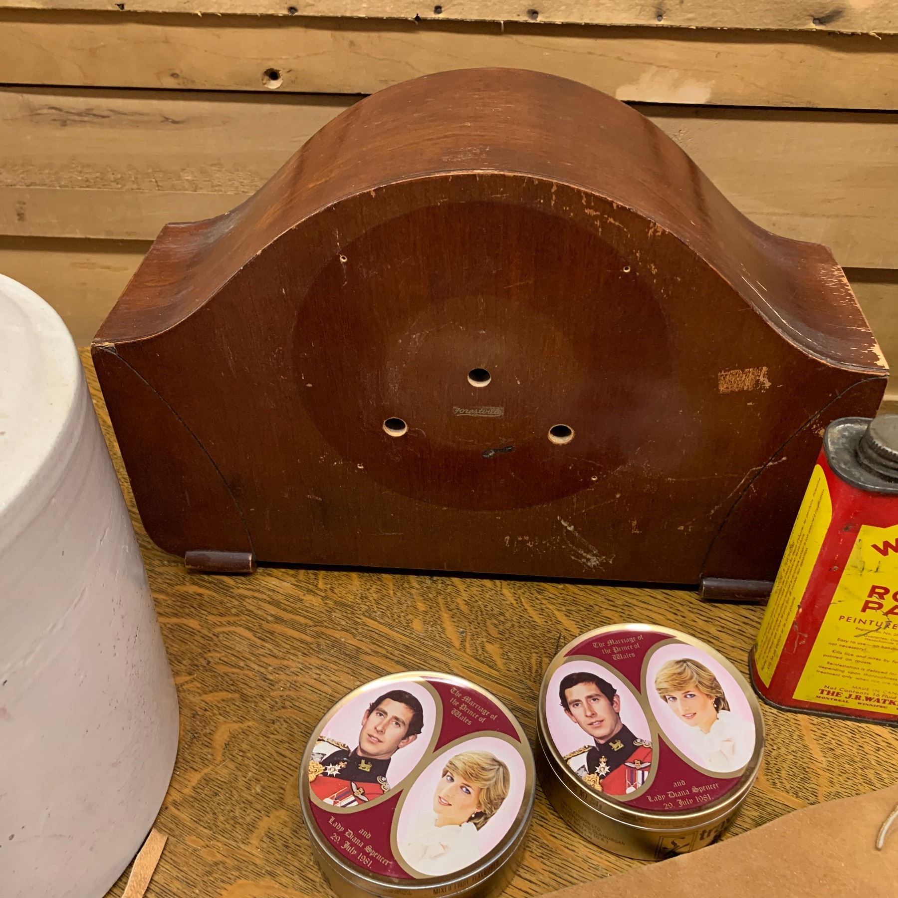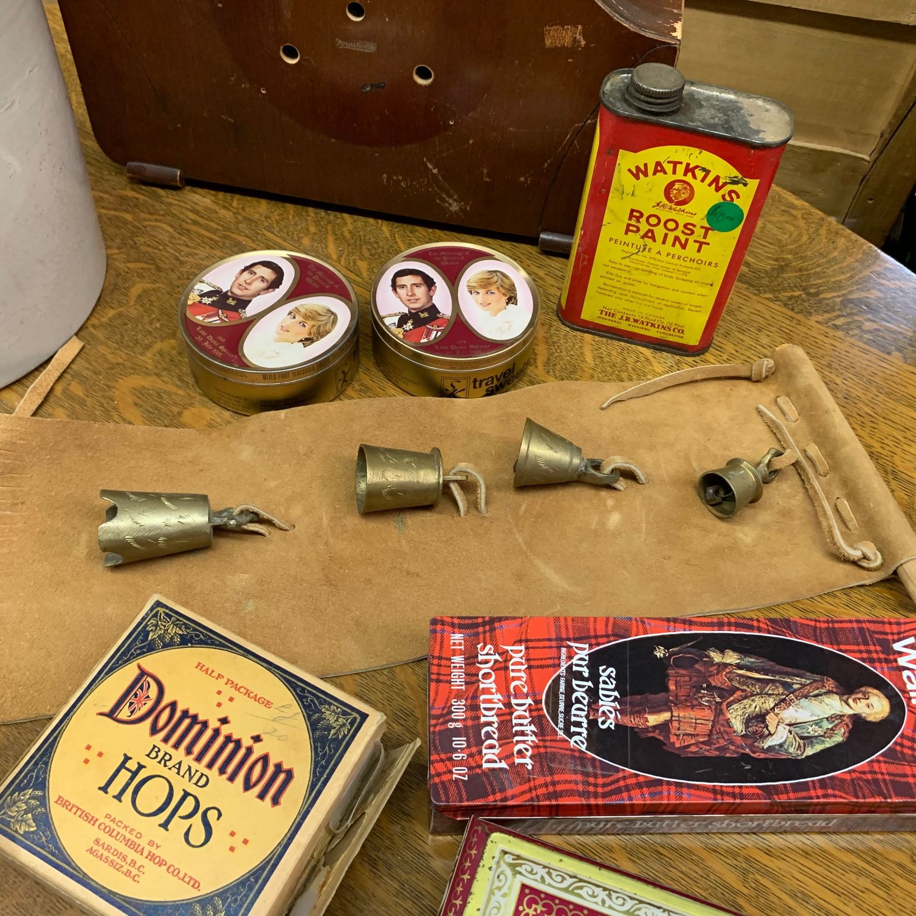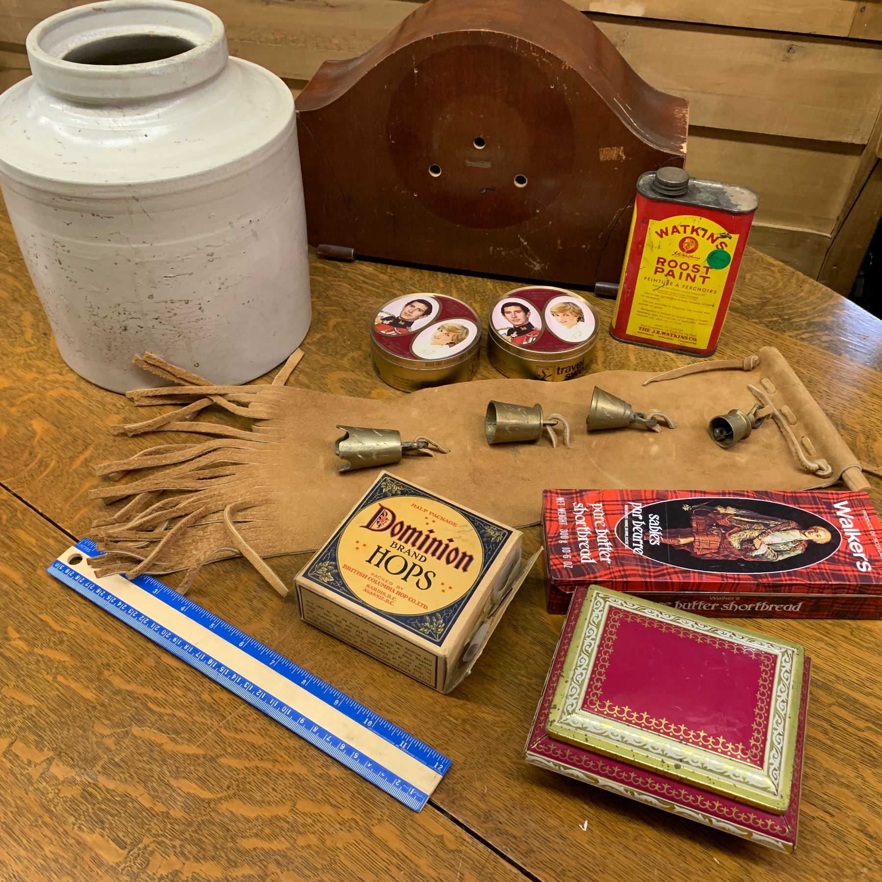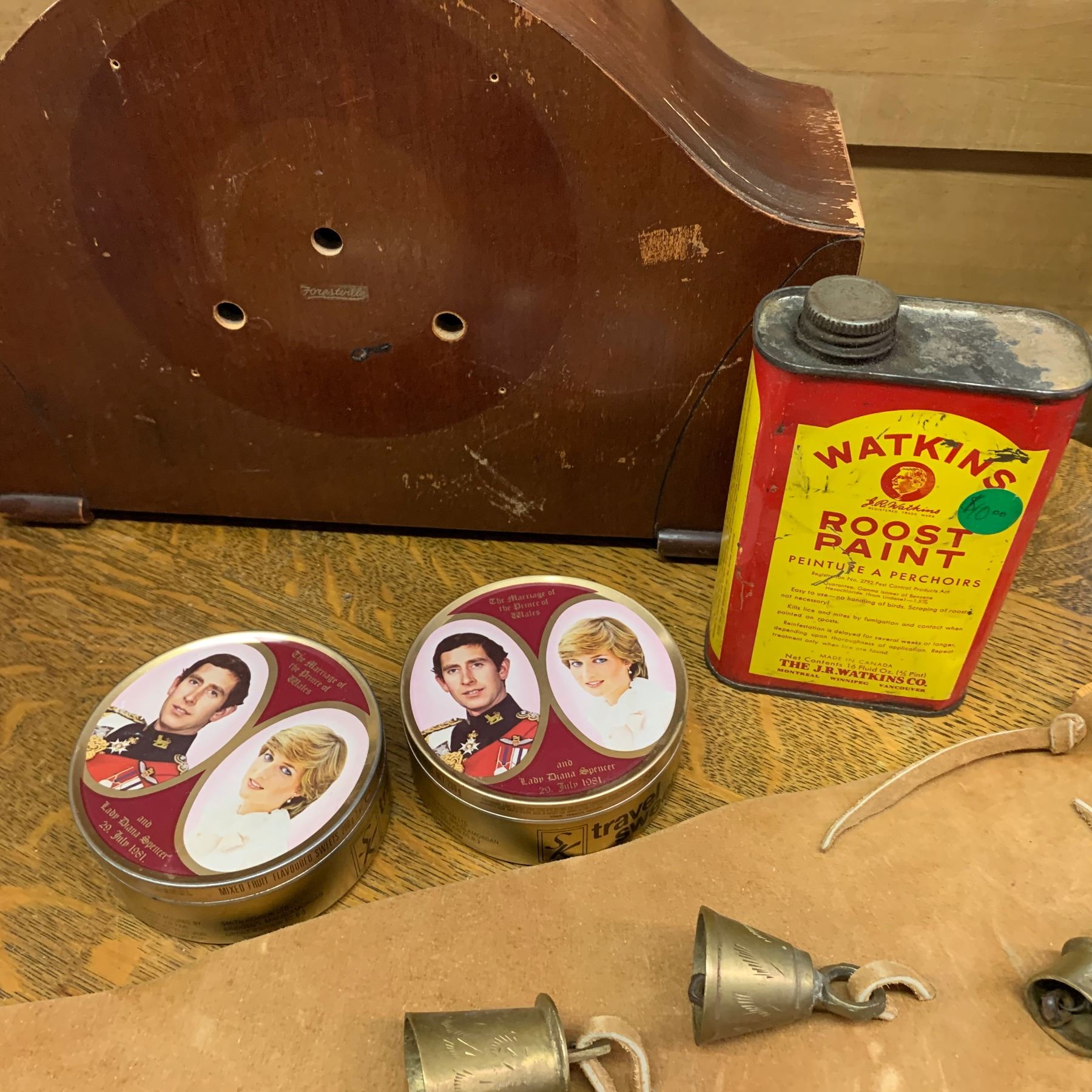 MISC LOT CLOCK PIECE TINS CROCK BELLS