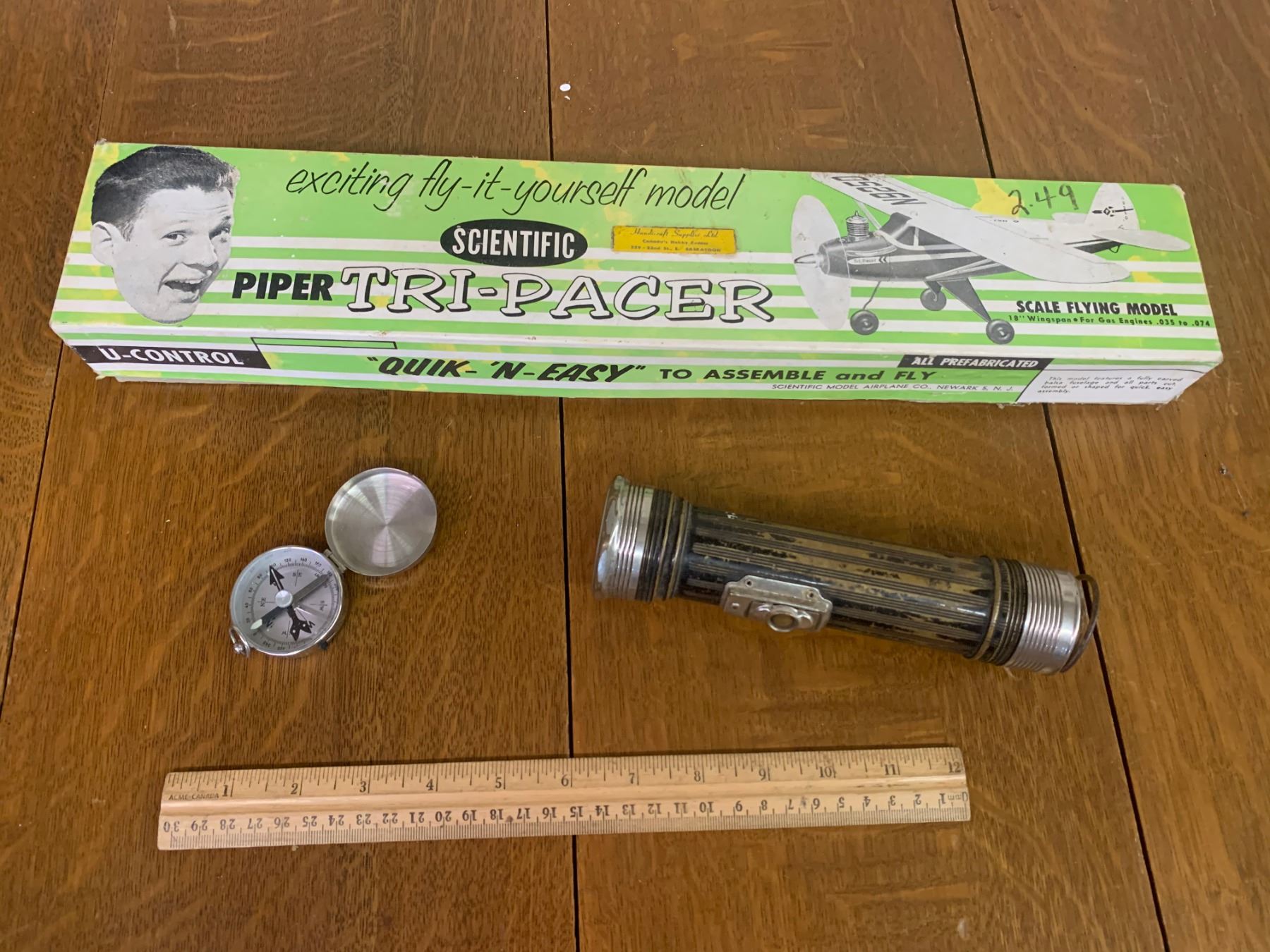 MISC LOT COMPASS FLASHLIGHT MODEL PLANE BOX