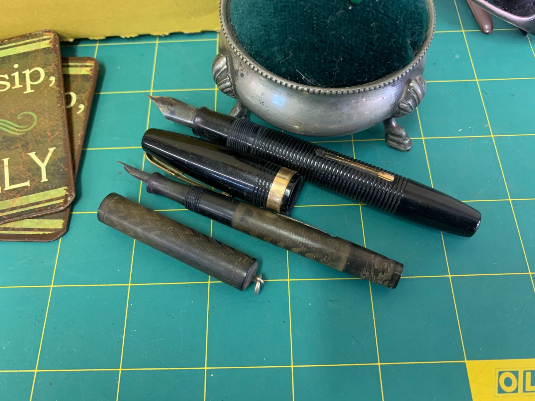 MISC LOT FOUNTAIN PENS PIN CUSHION DYES ETC