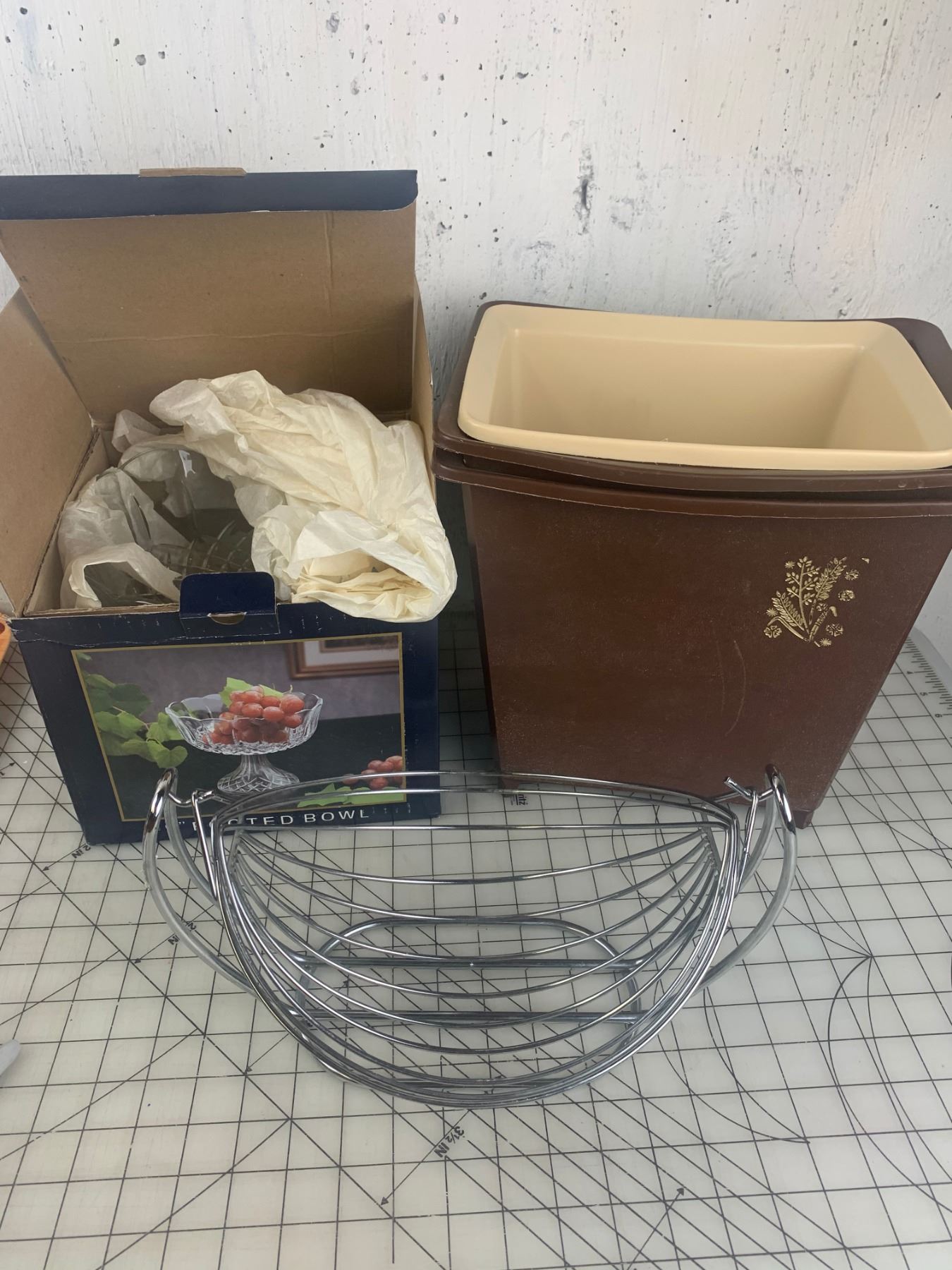 MISC LOT GARBAGE CANS BOWL FEUIT SWING