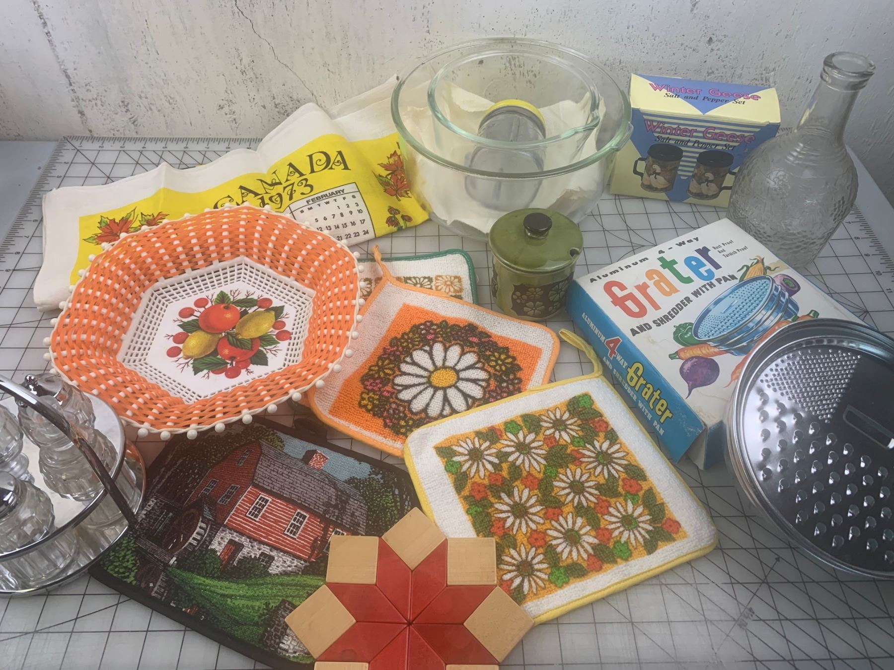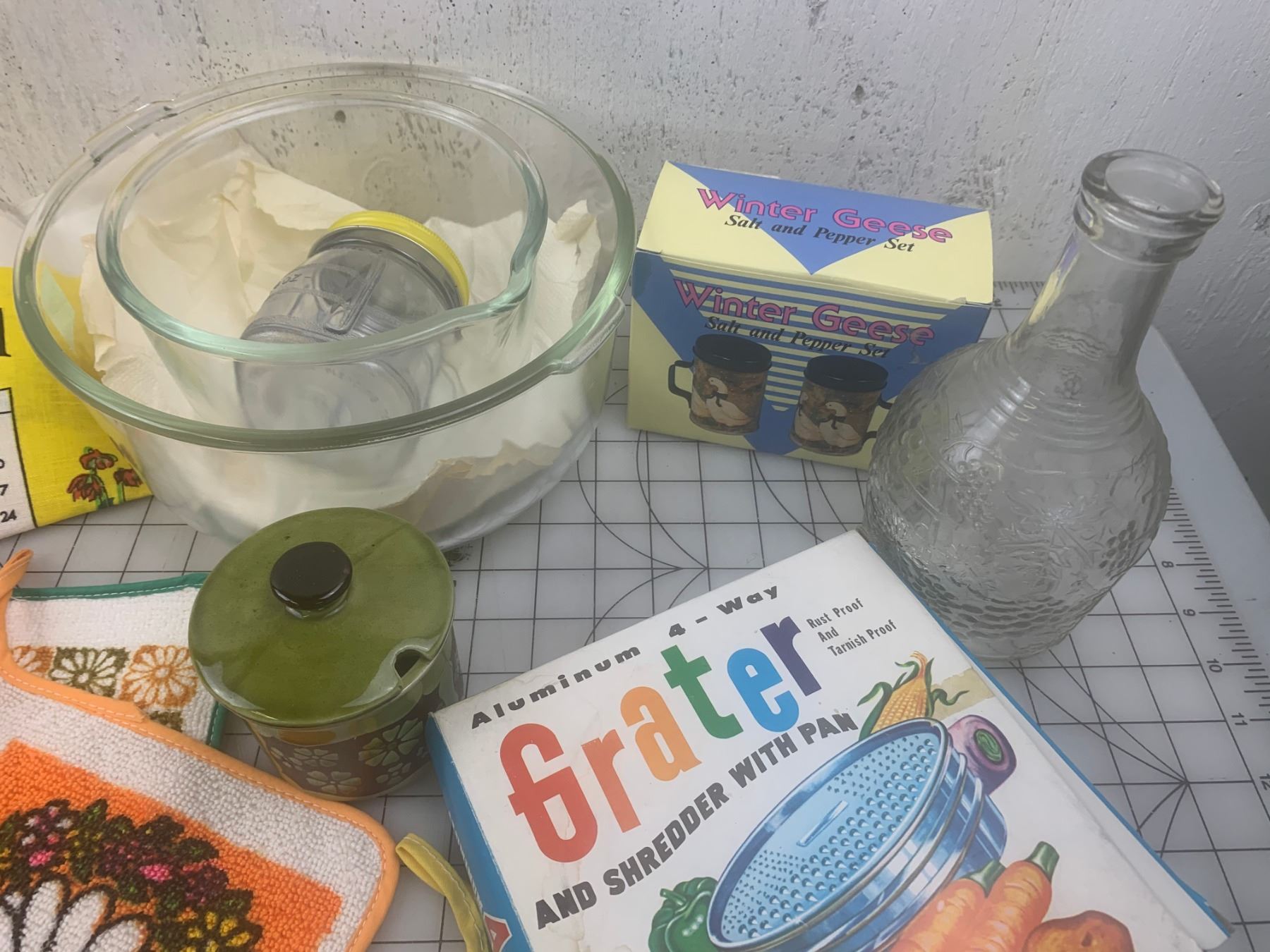 MISC LOT KITCHEN MIXING BOWLS GOOSE SALT AND PEPPER