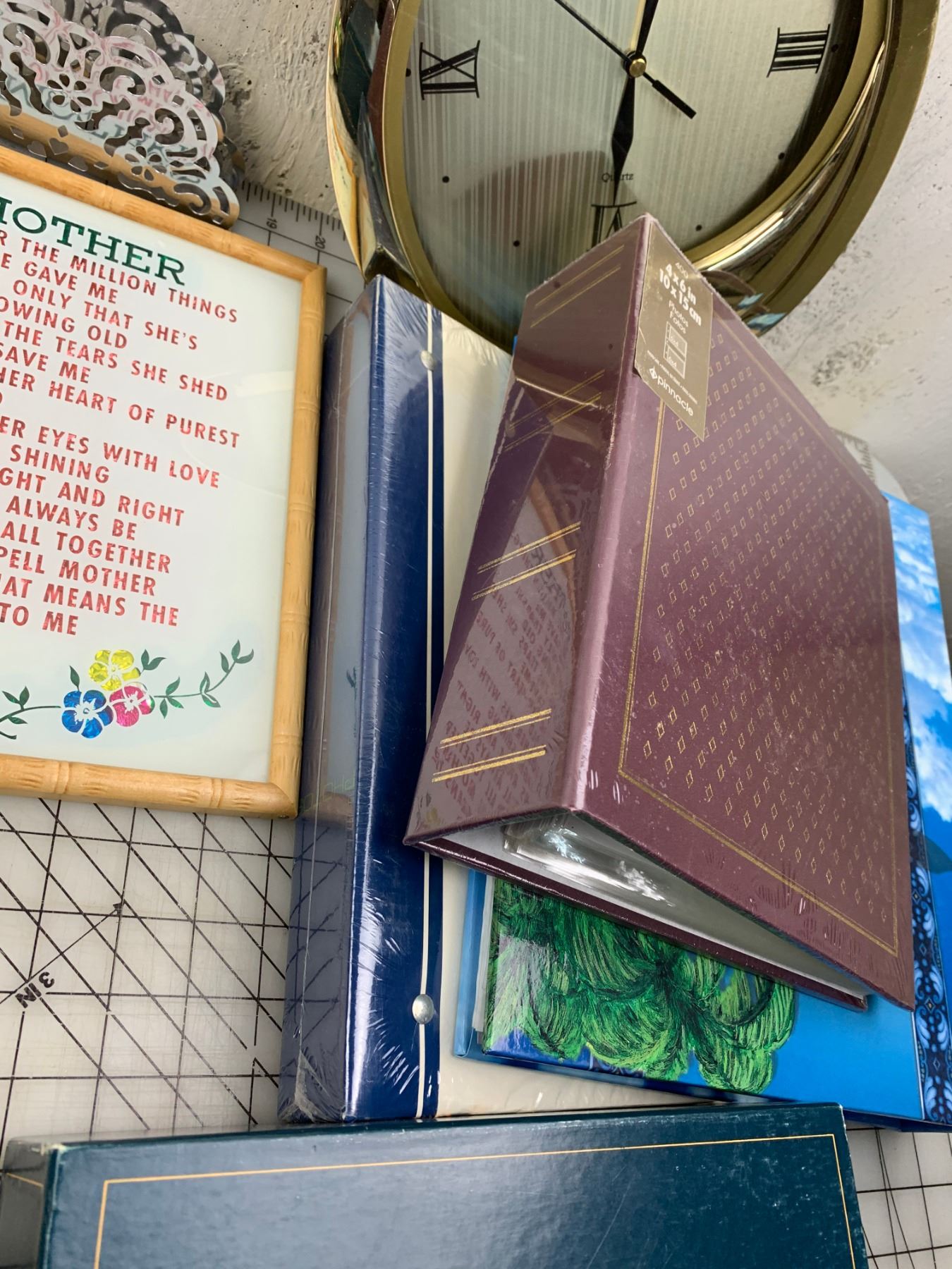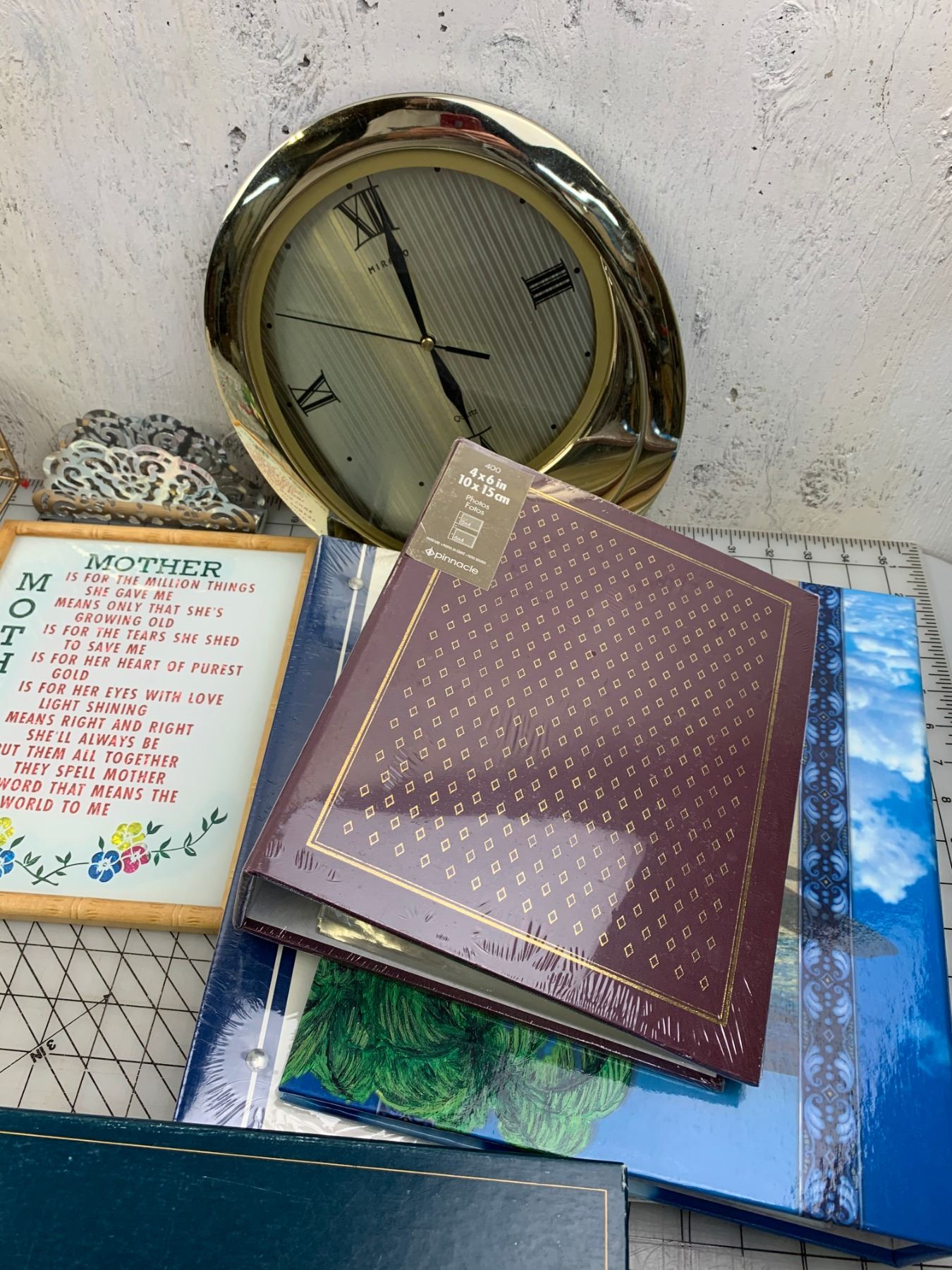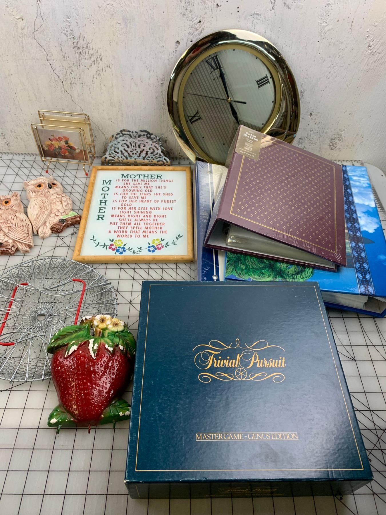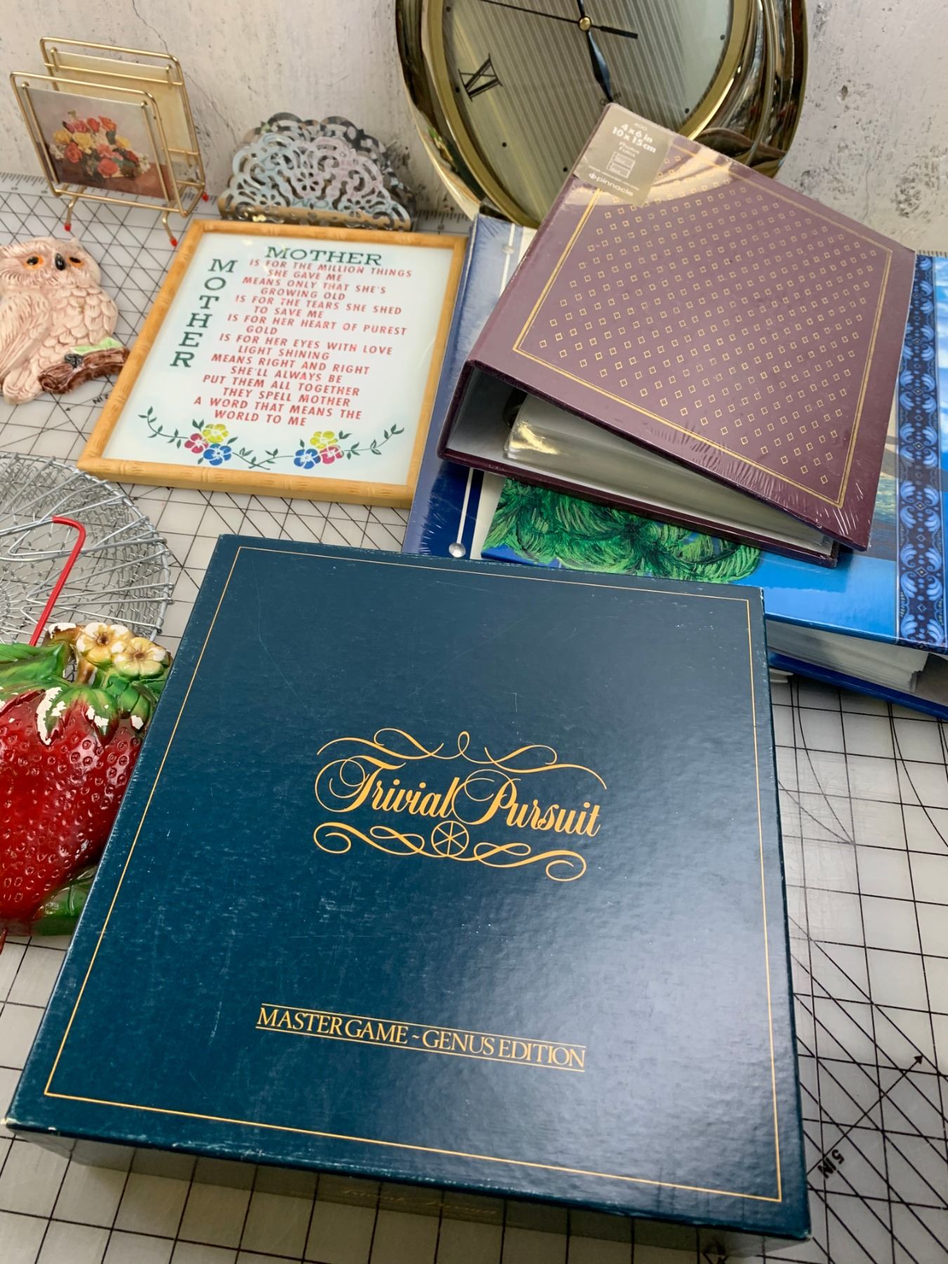 MISC LOT PHOTO ALBUMS CLOCK TRIVIAL PURSUIT ETC