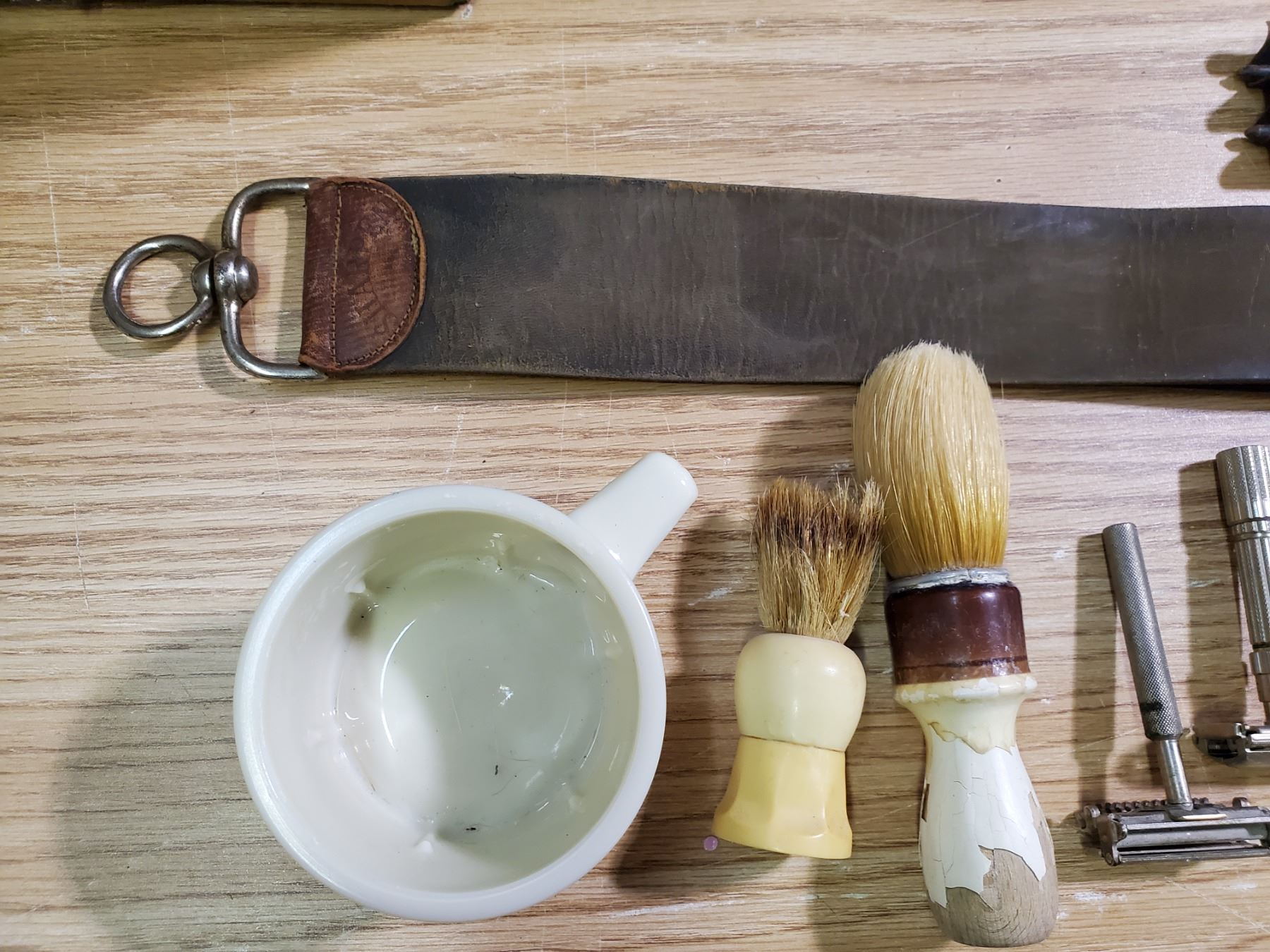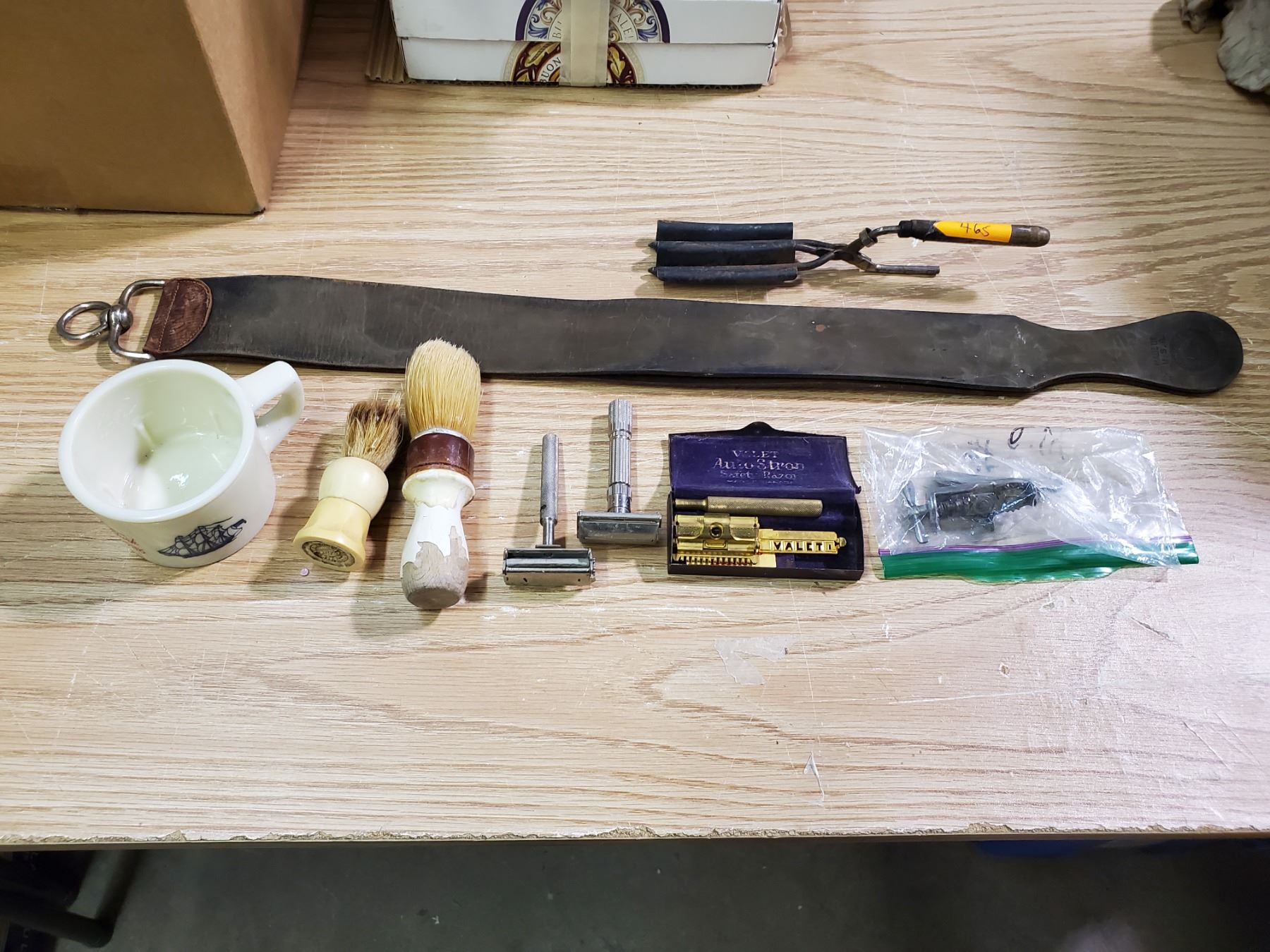 MISC LOT - RAZORS, MUG, STROP & MISC