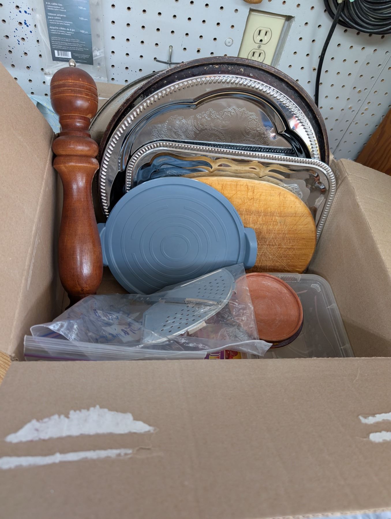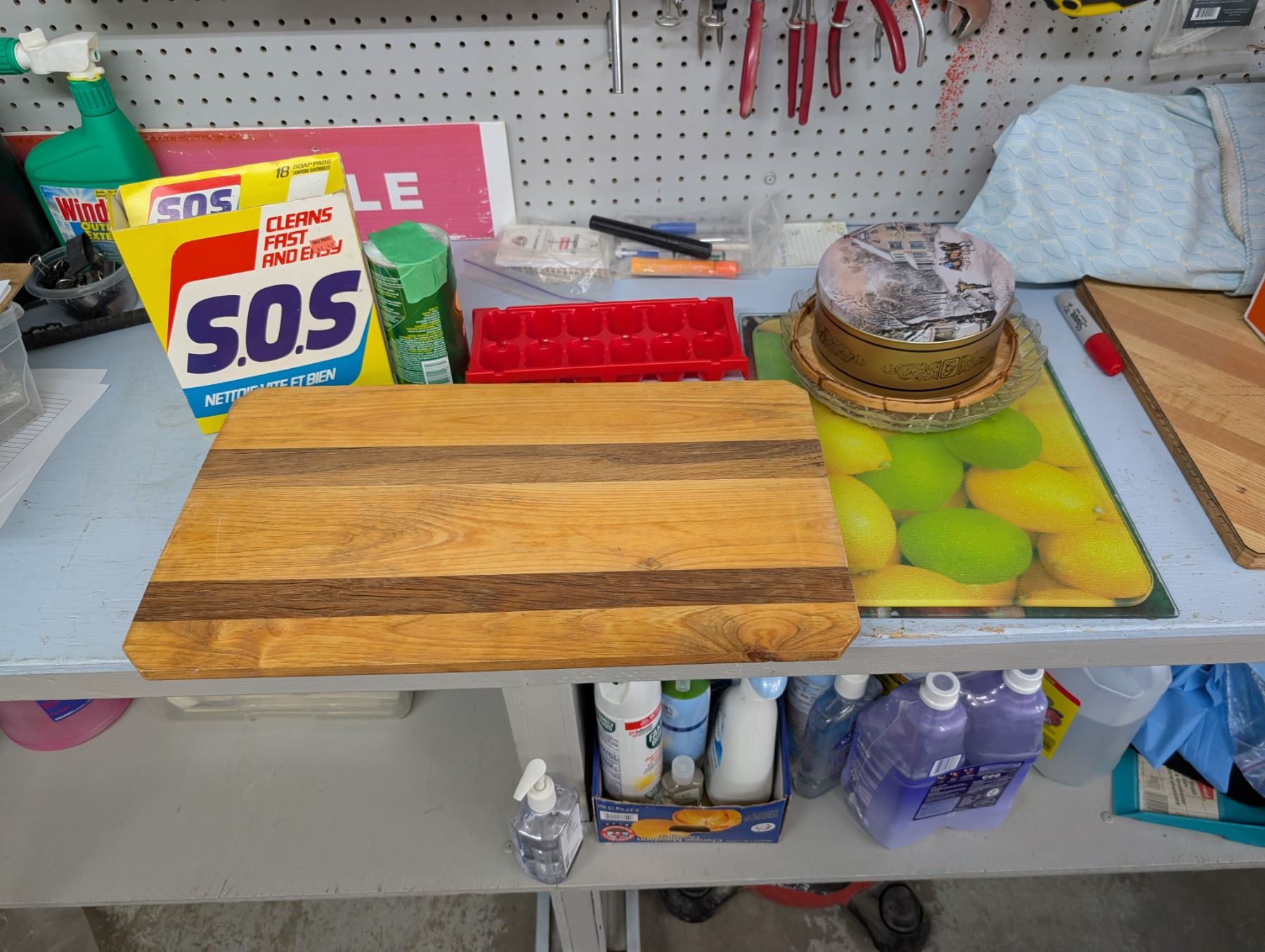 MISC. Lot (Trays, Dinner glass, tins, Cutting Boards, and etc.)