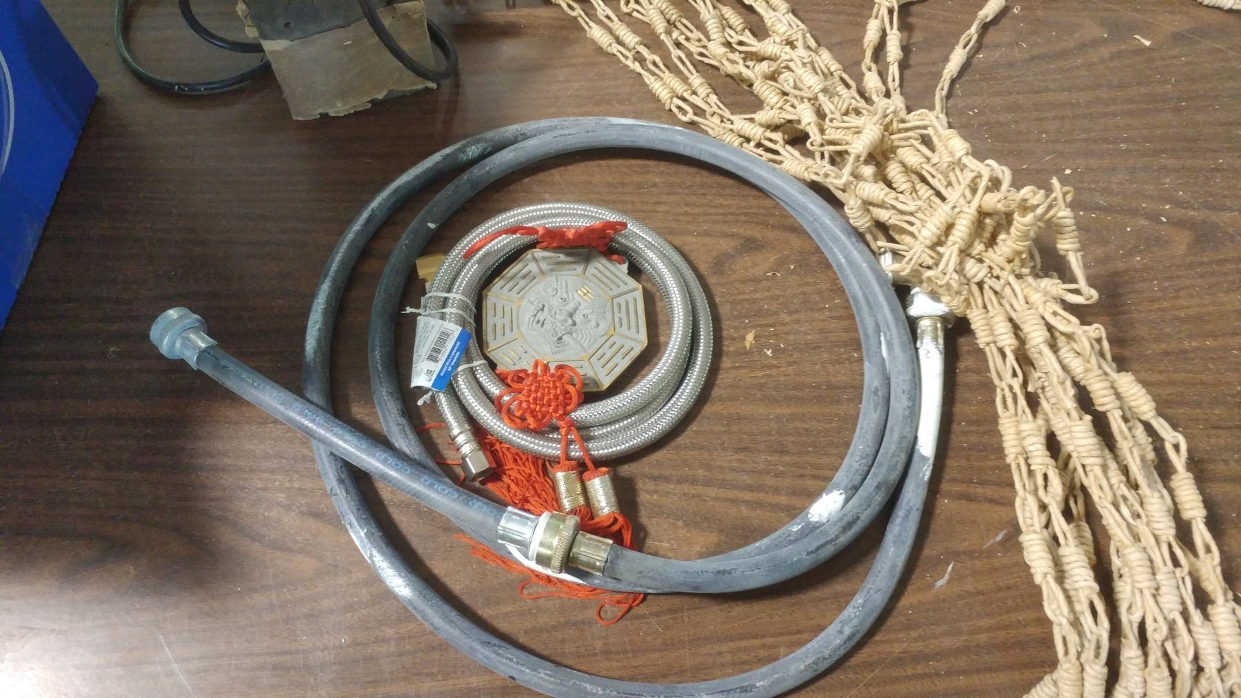 MISCELLANEOUS LOT - PALM SANDER, WASHING MACHINES HOSES, ETC.