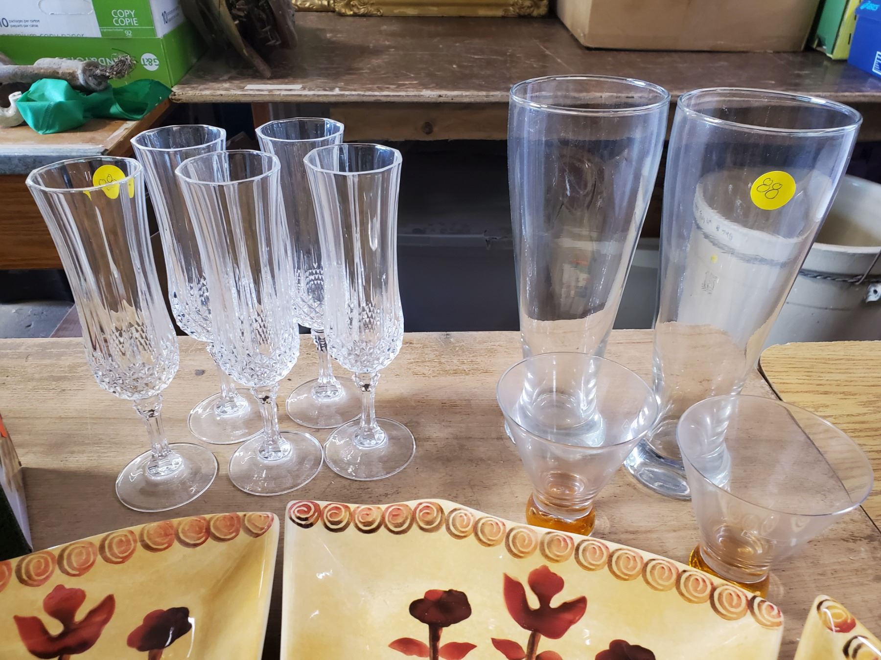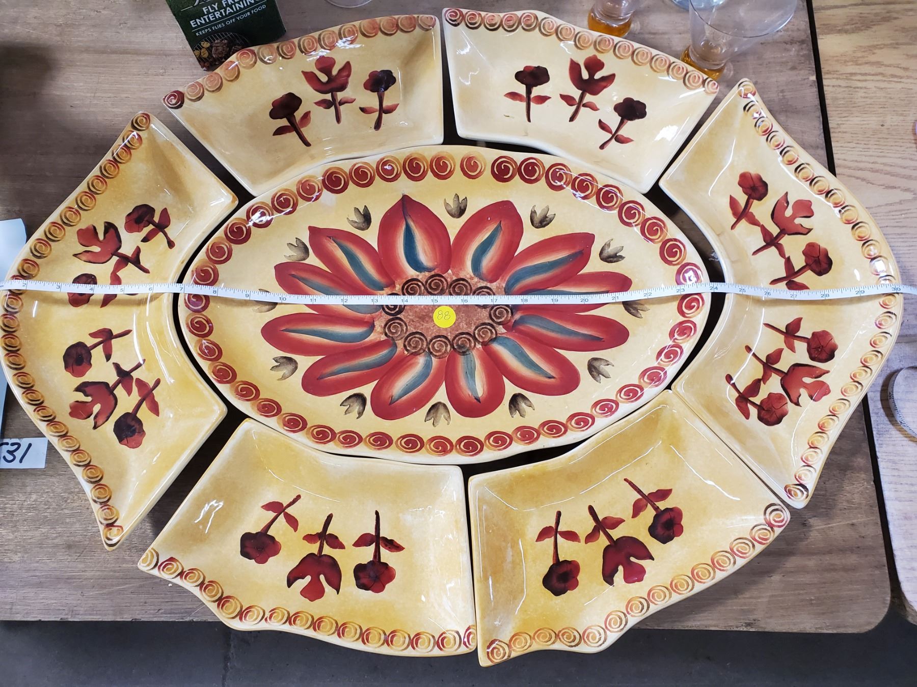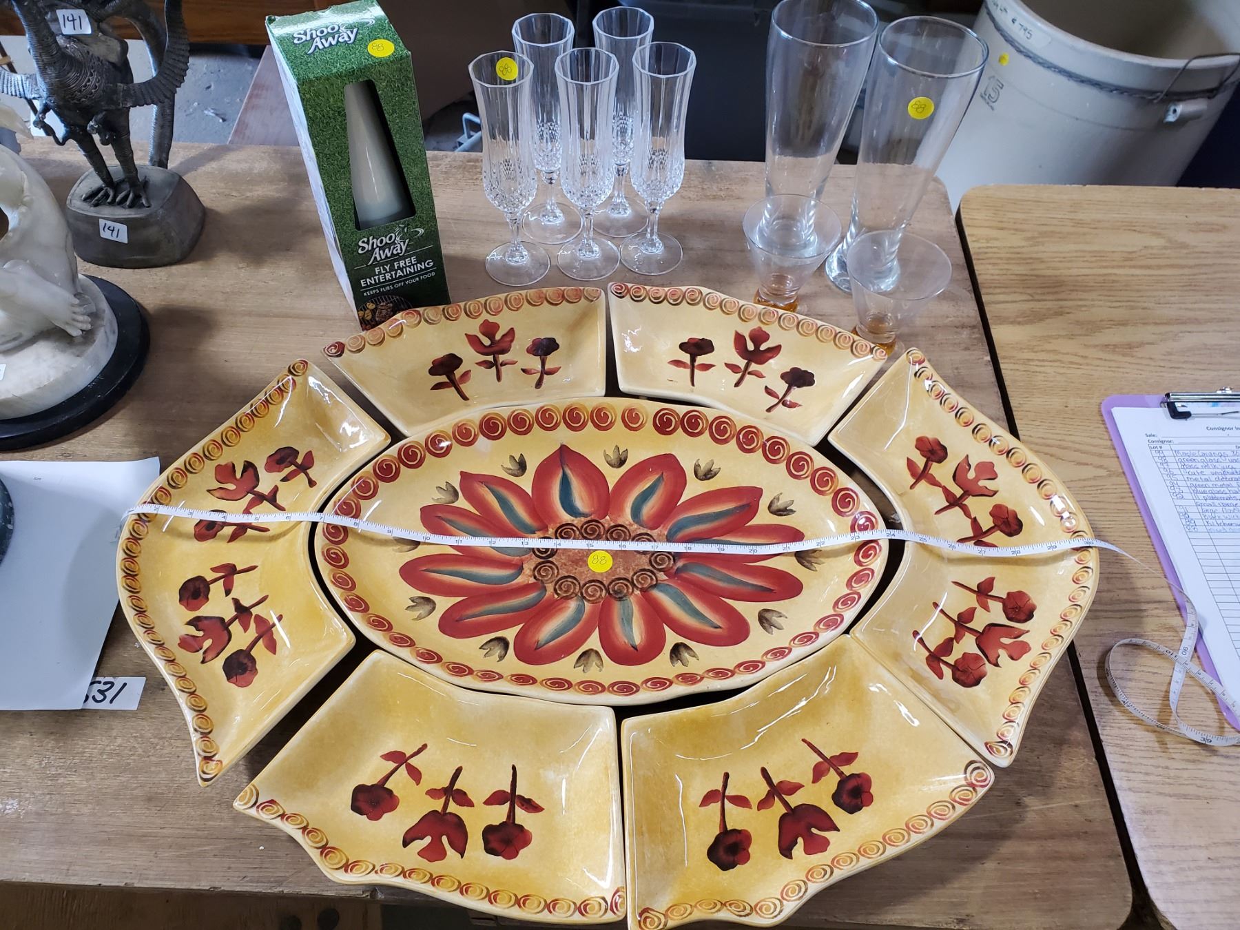 MIXED DRINKING GLASSES, 'FLY SHOO AWAY', 7 PIECE CERAMIC TRAY