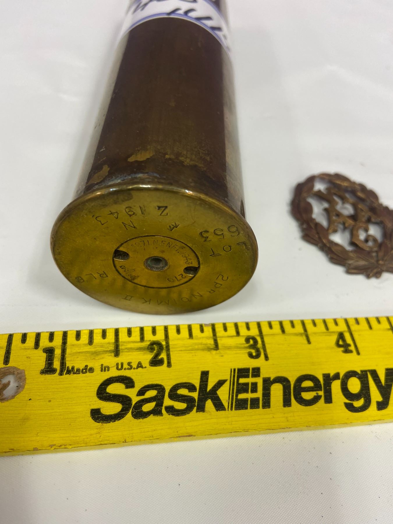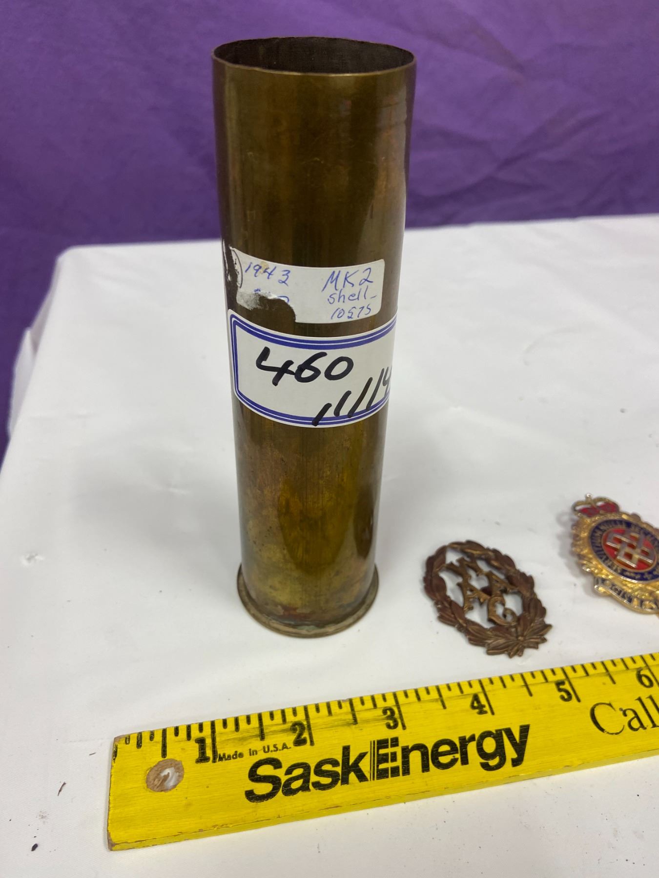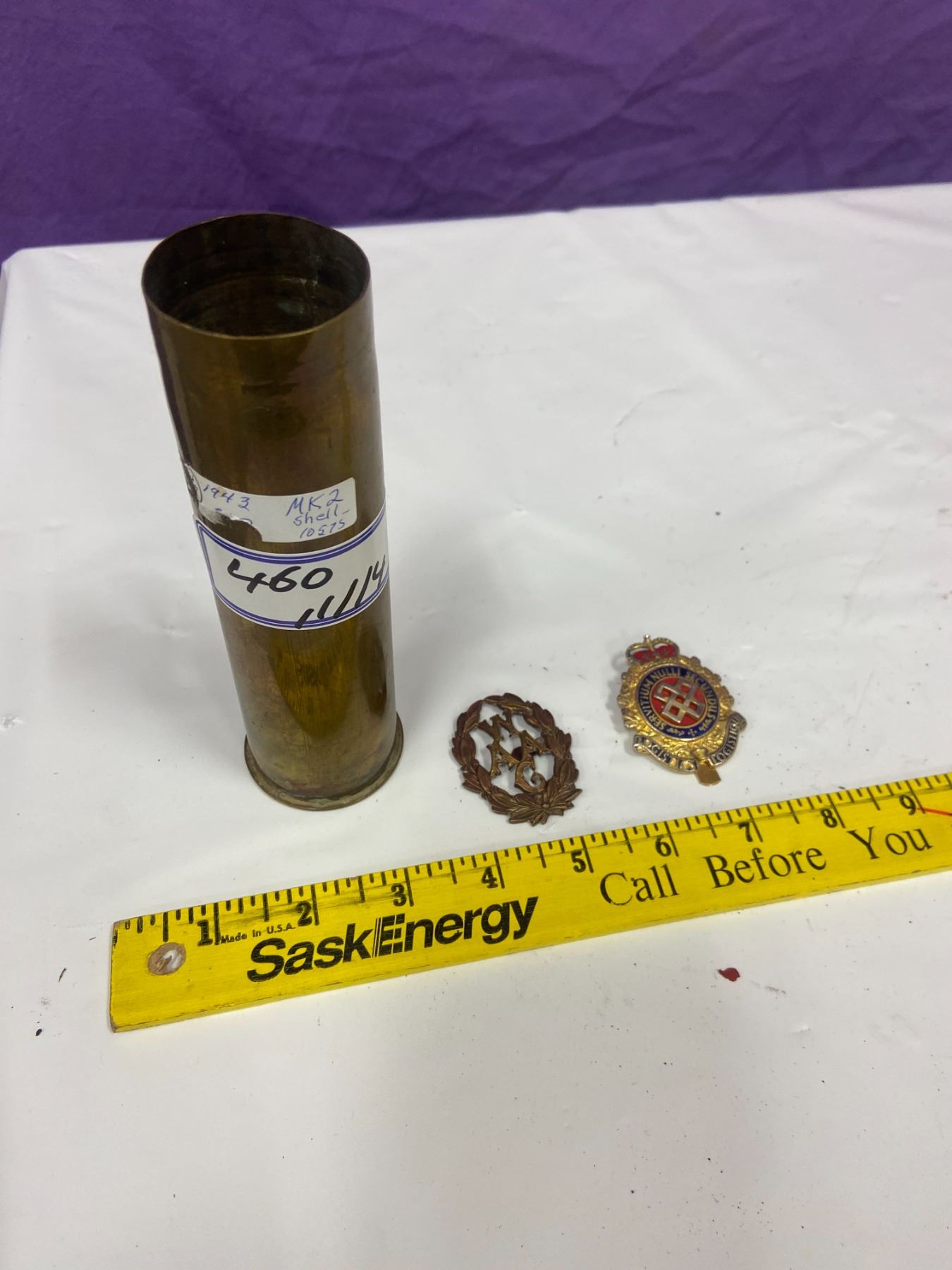 MK2 BRASS SHELL AND 2 WAR MEDALS