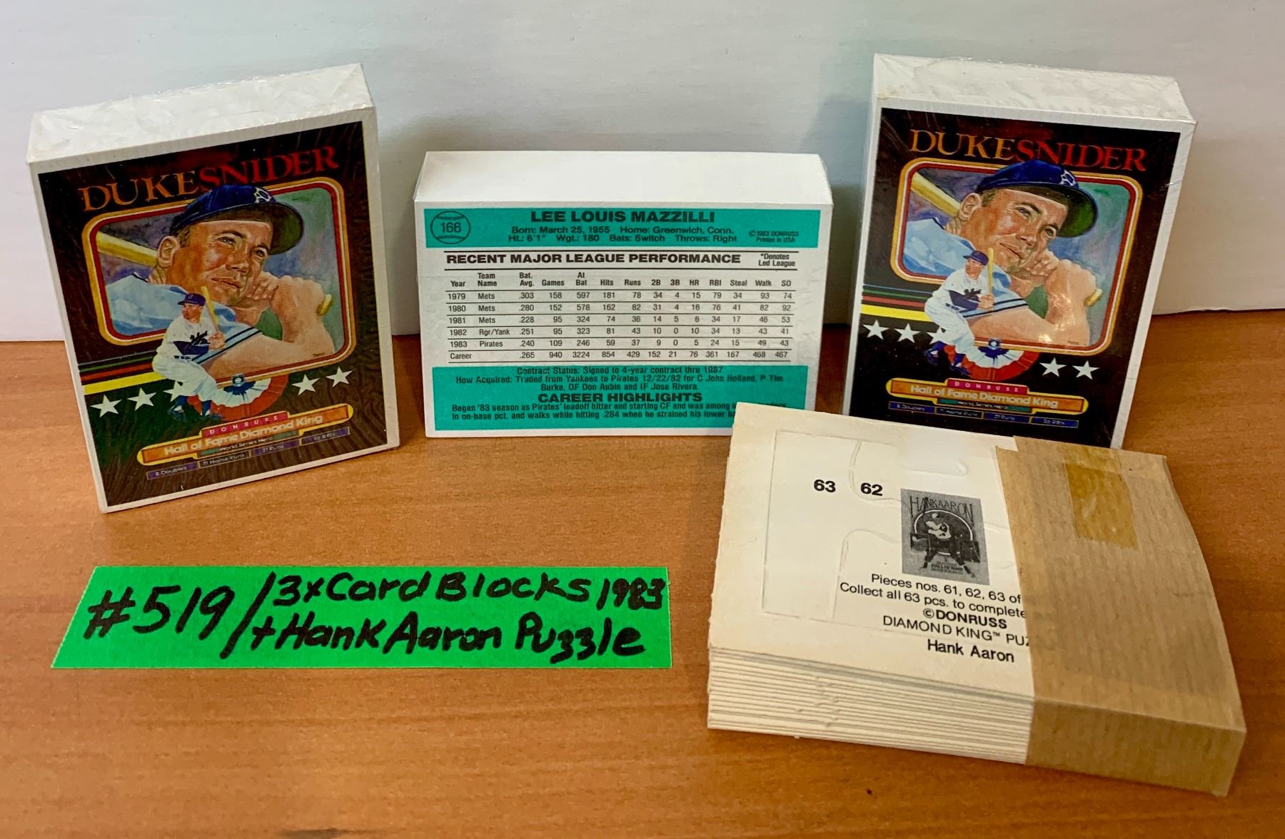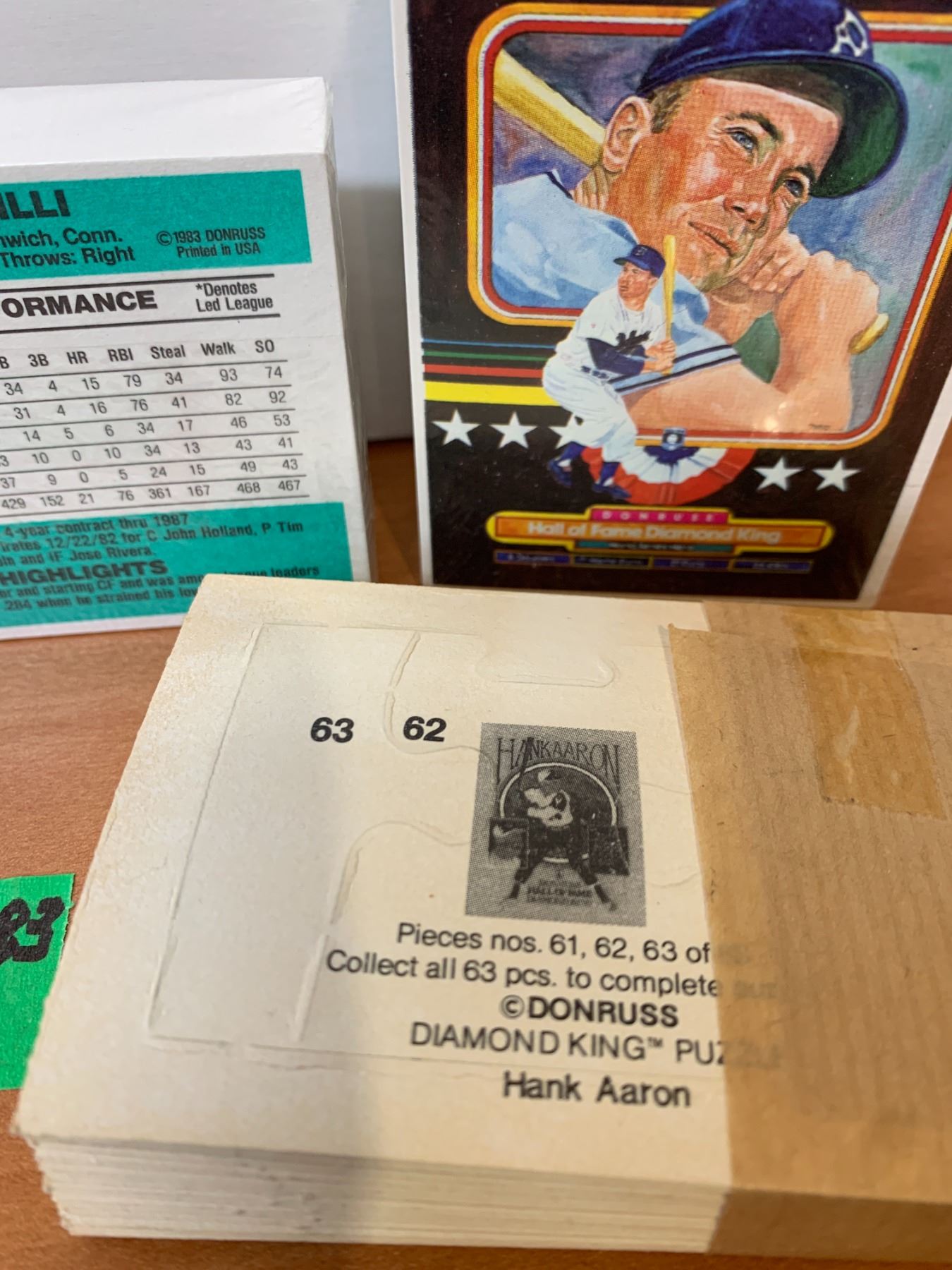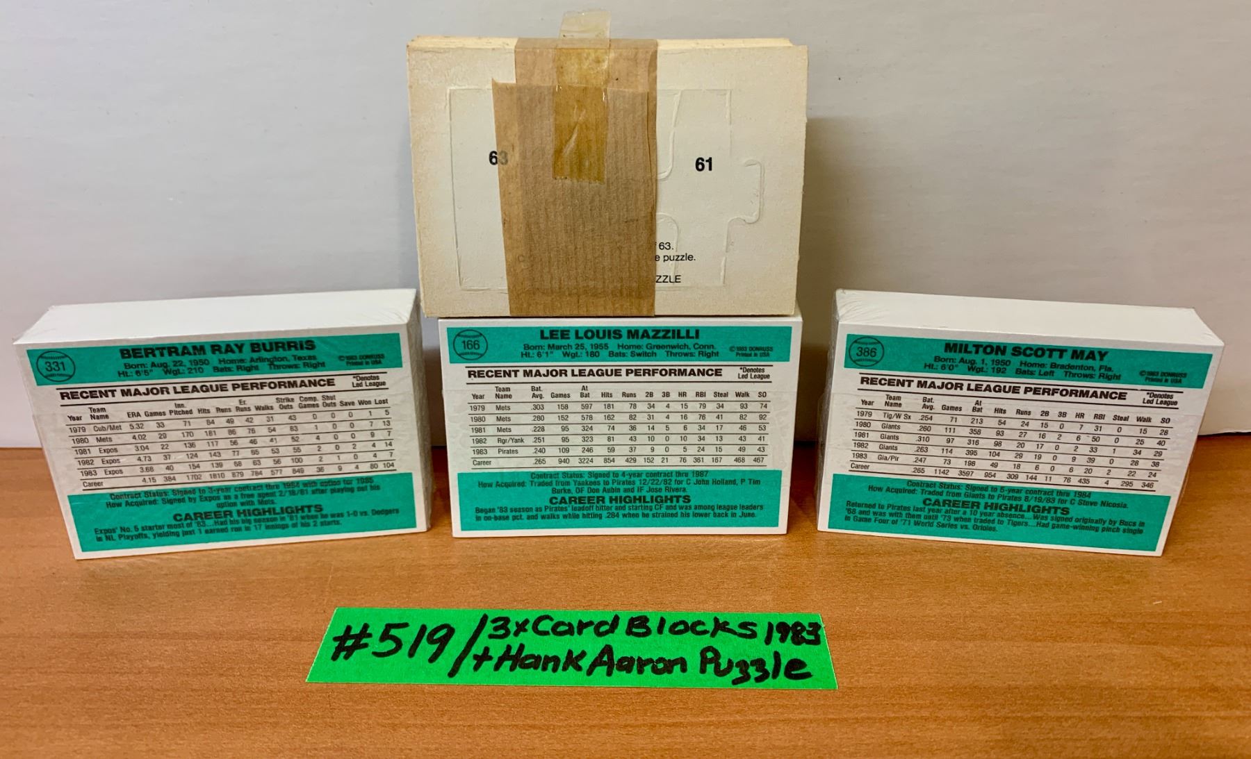 MLB Baseball 3 x Sealed Donruss Card Blocks from 1983 Set & BONUS Hank Aaron Puzzle Card Set!