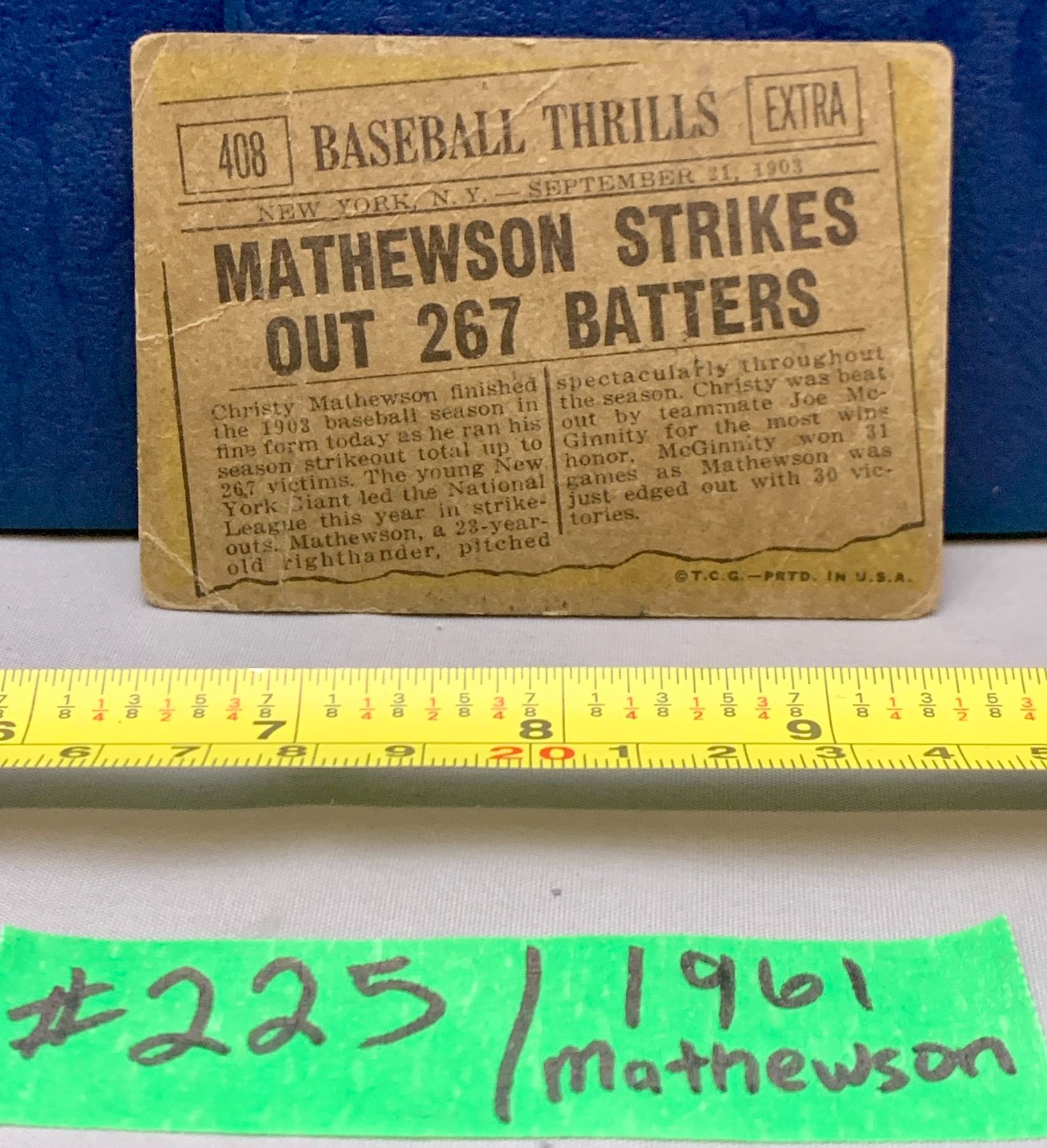 MLB Baseball Card - 1961 Vintage Rare Christy Mathewson 267 Strike Outs! Rare!