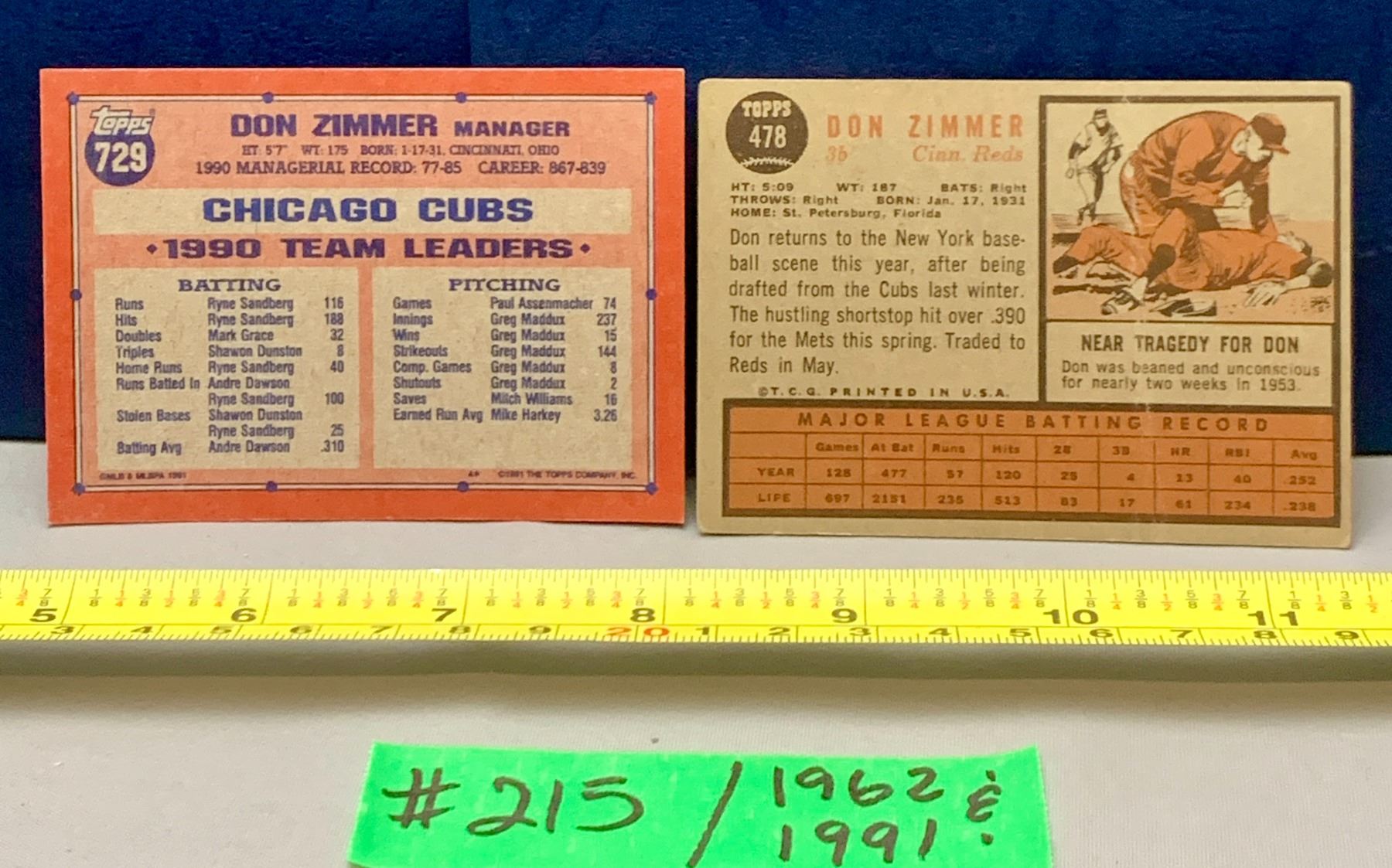 MLB Baseball Card - 1962 & 1991 Vintage Don Zimmer HOF BB Cards