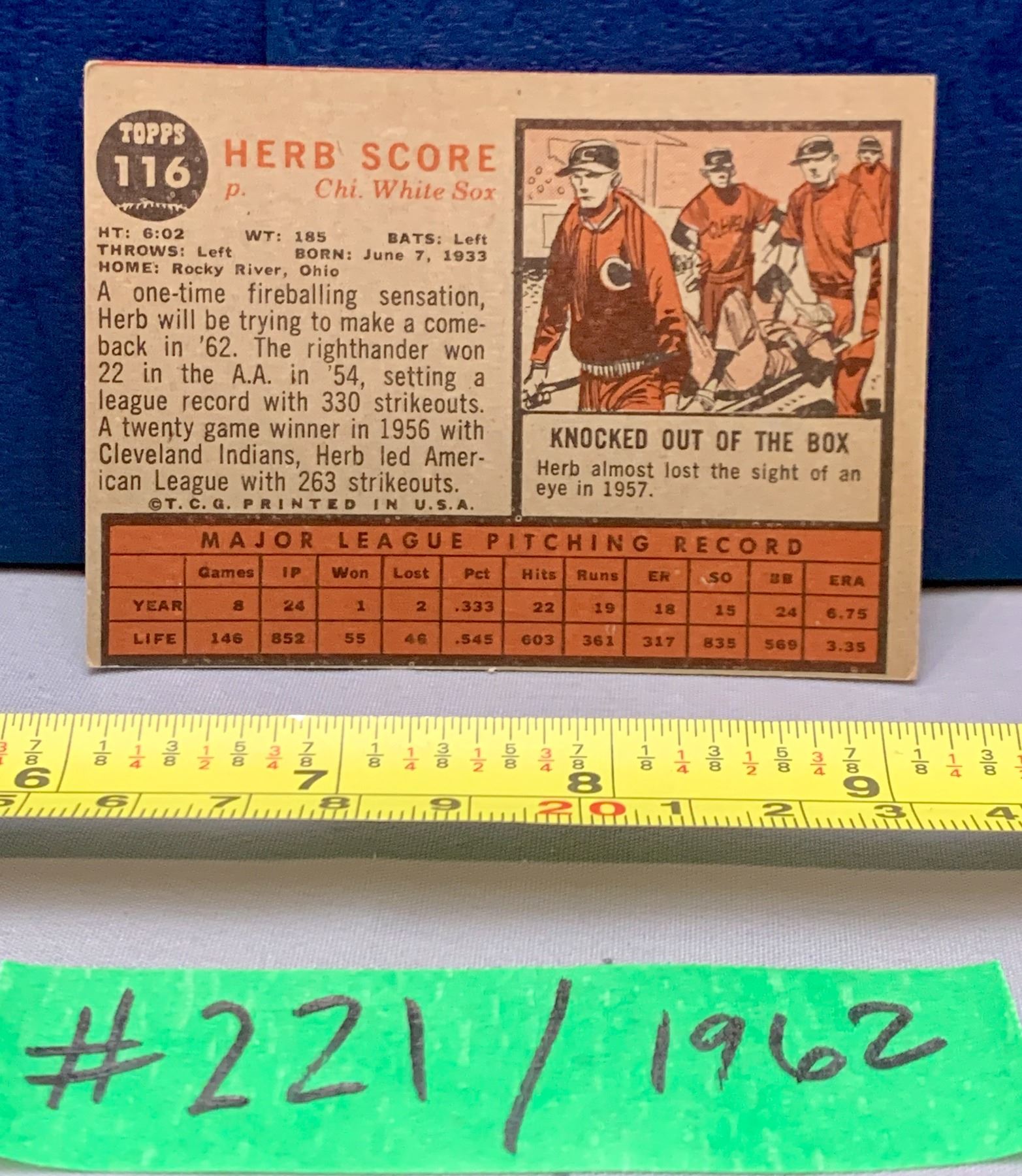 MLB Baseball Card - 1962 Vintage Herb Score #116
