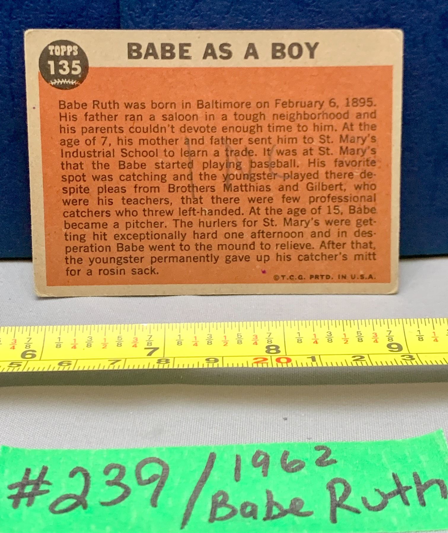 MLB Baseball Card - 1962 Vintage and Rare "Babe as a Boy" Babe Ruth Rare!