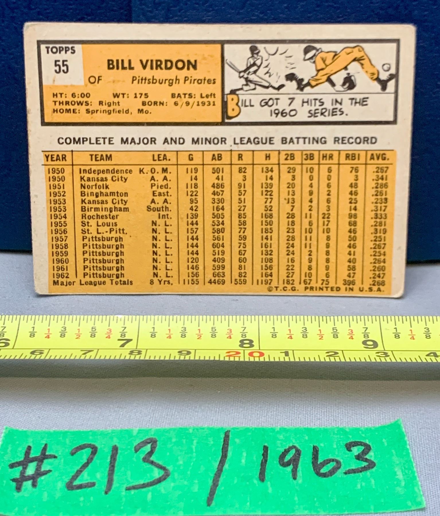 MLB Baseball Card - 1963 Vintage Bill Virdon #55