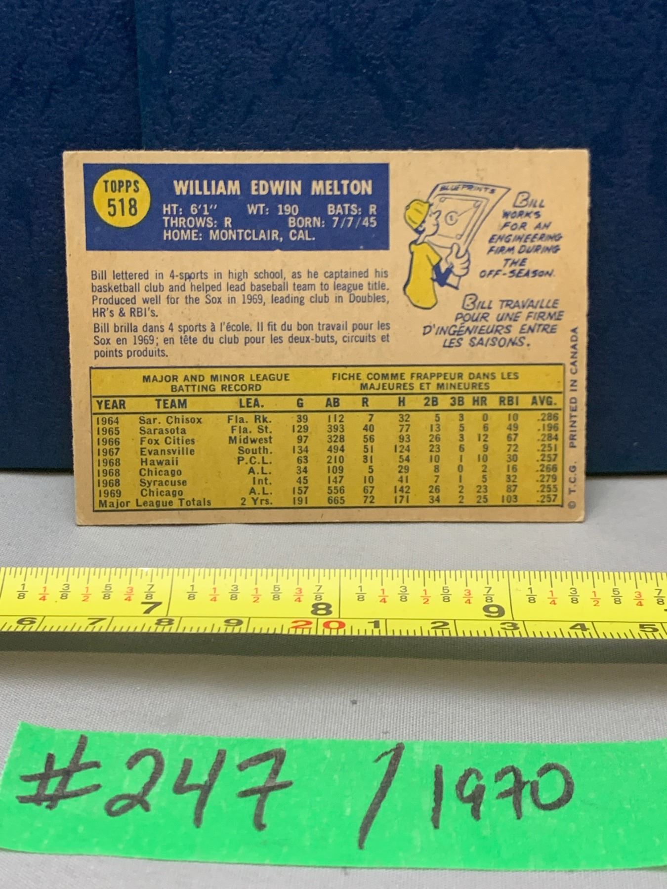 MLB Baseball Card - 1970 Vintage Bill Melton #518