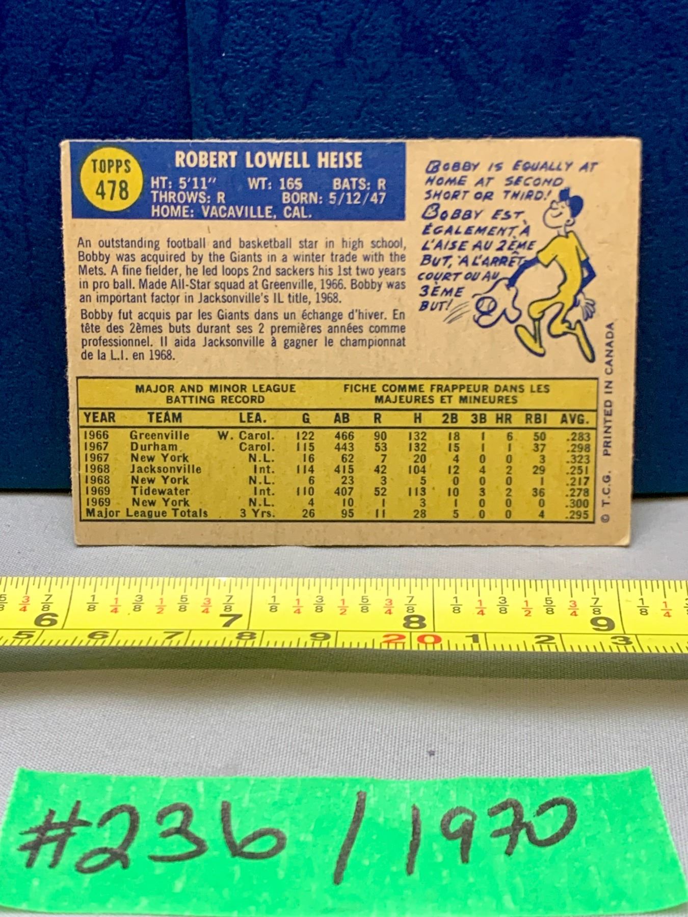 MLB Baseball Card - 1970 Vintage Bob Heise #478