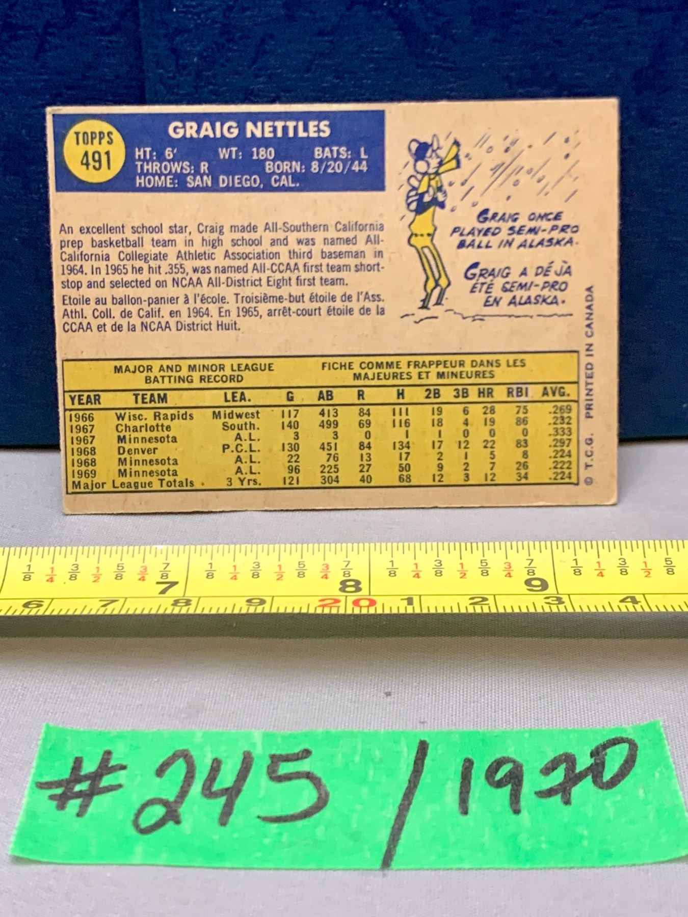 MLB Baseball Card - 1970 Vintage Craig Nettles #491
