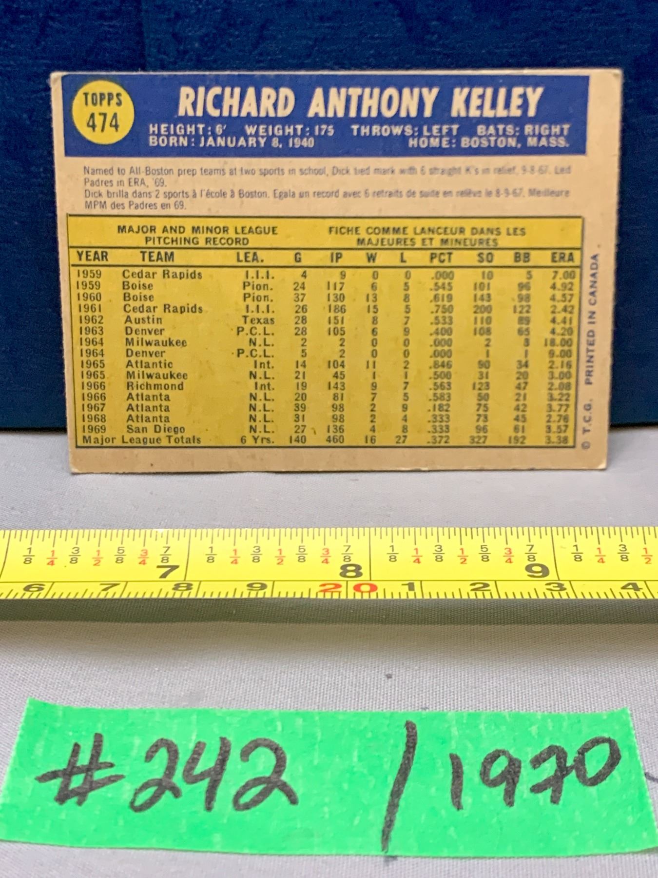 MLB Baseball Card - 1970 Vintage Dick Kelley #474
