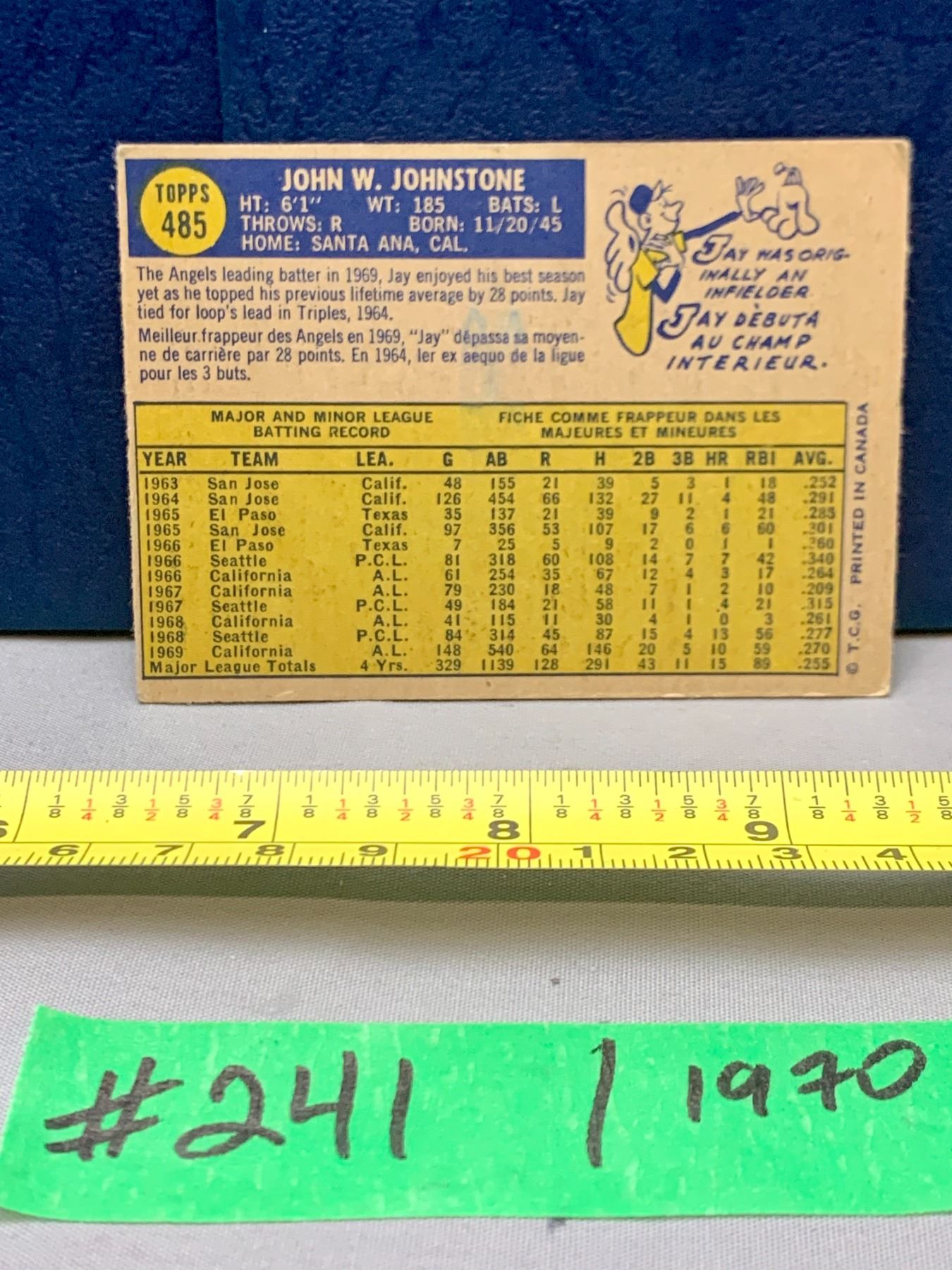MLB Baseball Card - 1970 Vintage Jay Johnstone #485