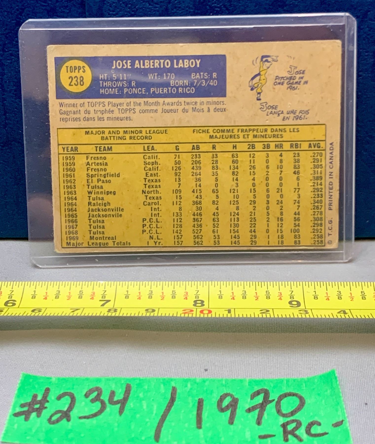MLB Baseball Card - 1970 Vintage Jose Laboy Rookie Card Expos Rare!