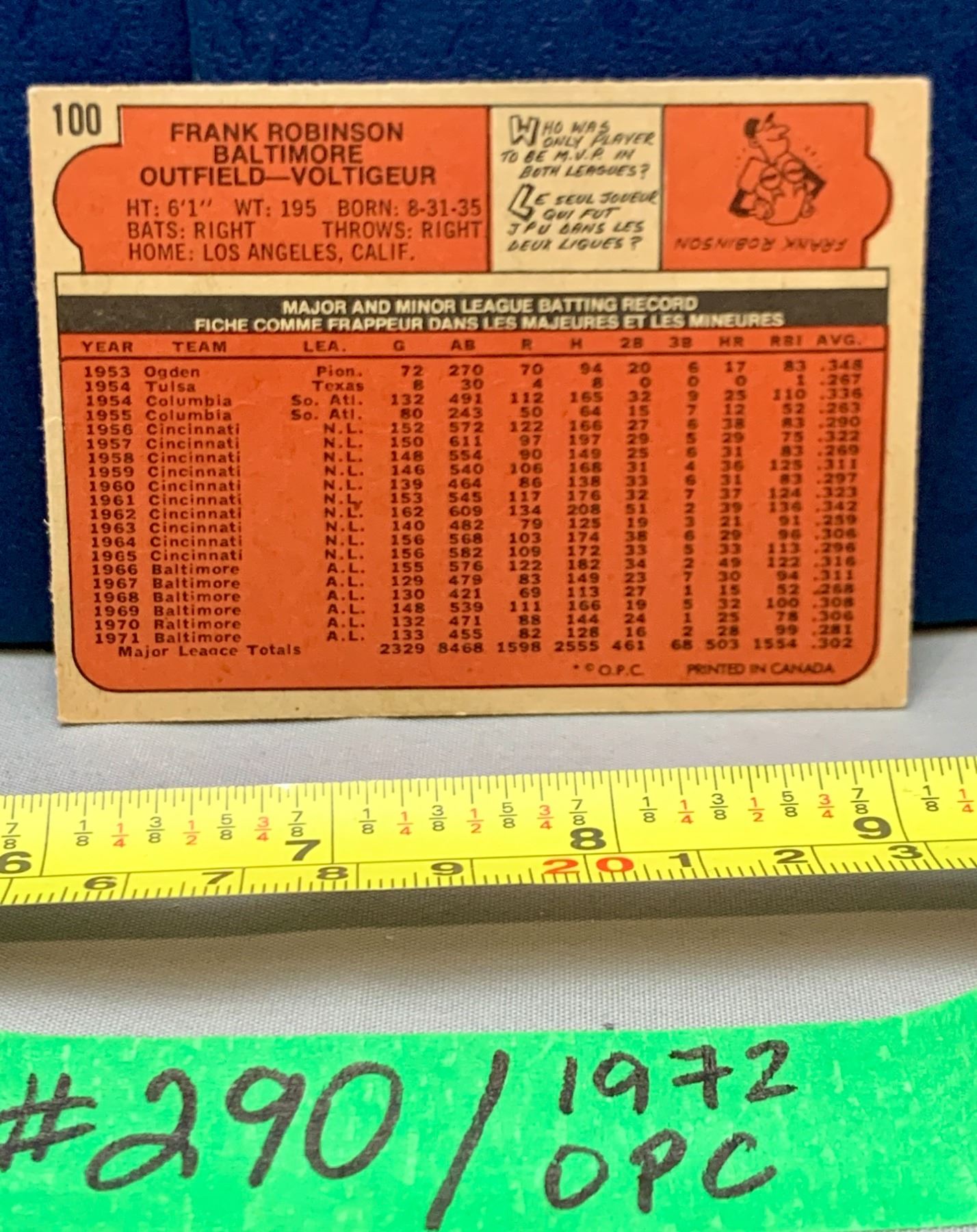 MLB Baseball Card - 1972 OPC Vintage Rare Frank Robinson #100