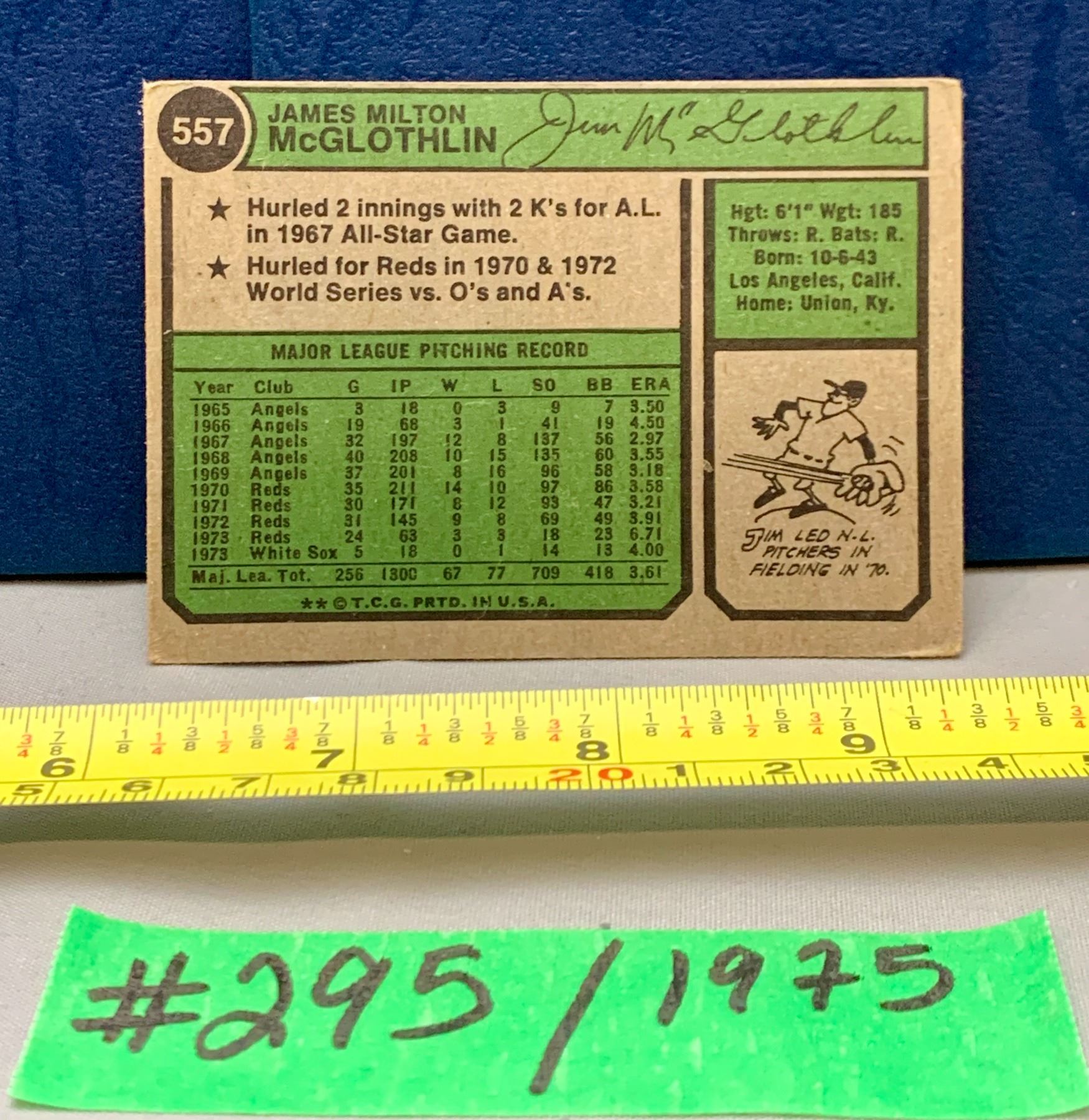 MLB Baseball Card - 1975 Vintage James McGlothlin #557