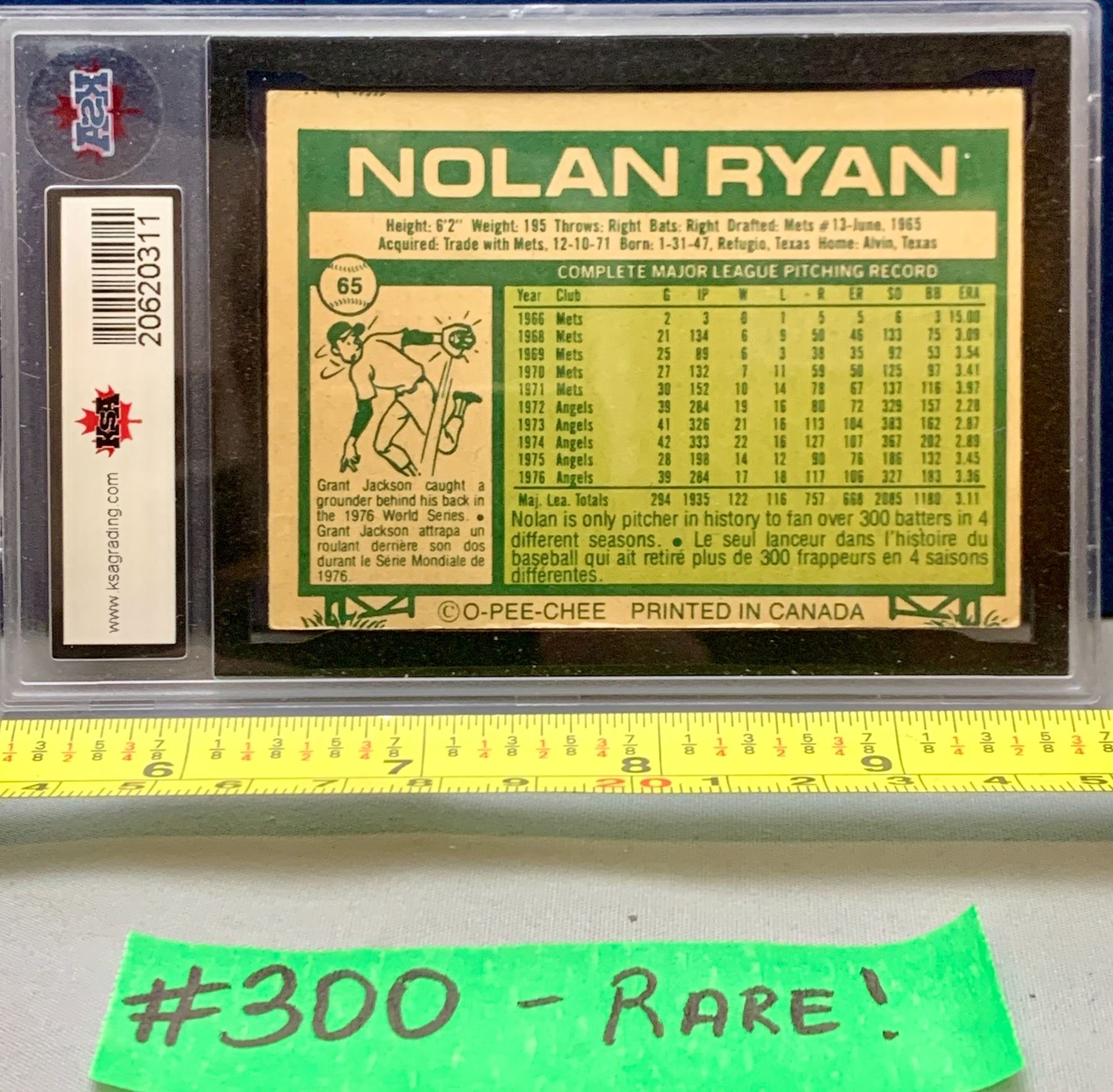 MLB Baseball Card - 1977 OPC Vintage Nolan Ryan Graded 4 Very Good #65 Rare!