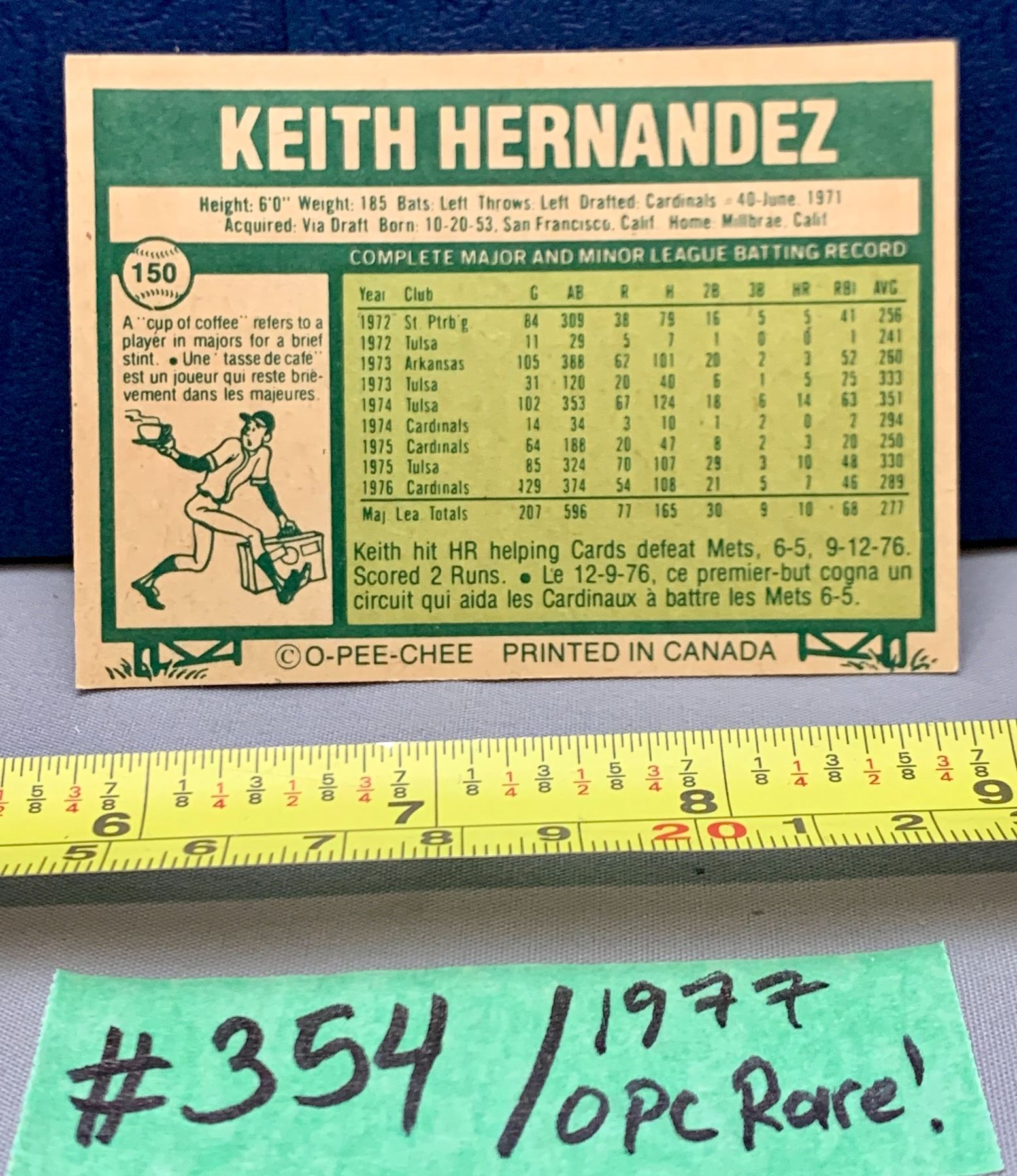 MLB Baseball Card - 1977 Rare OPC Vintage Keith Hernandez