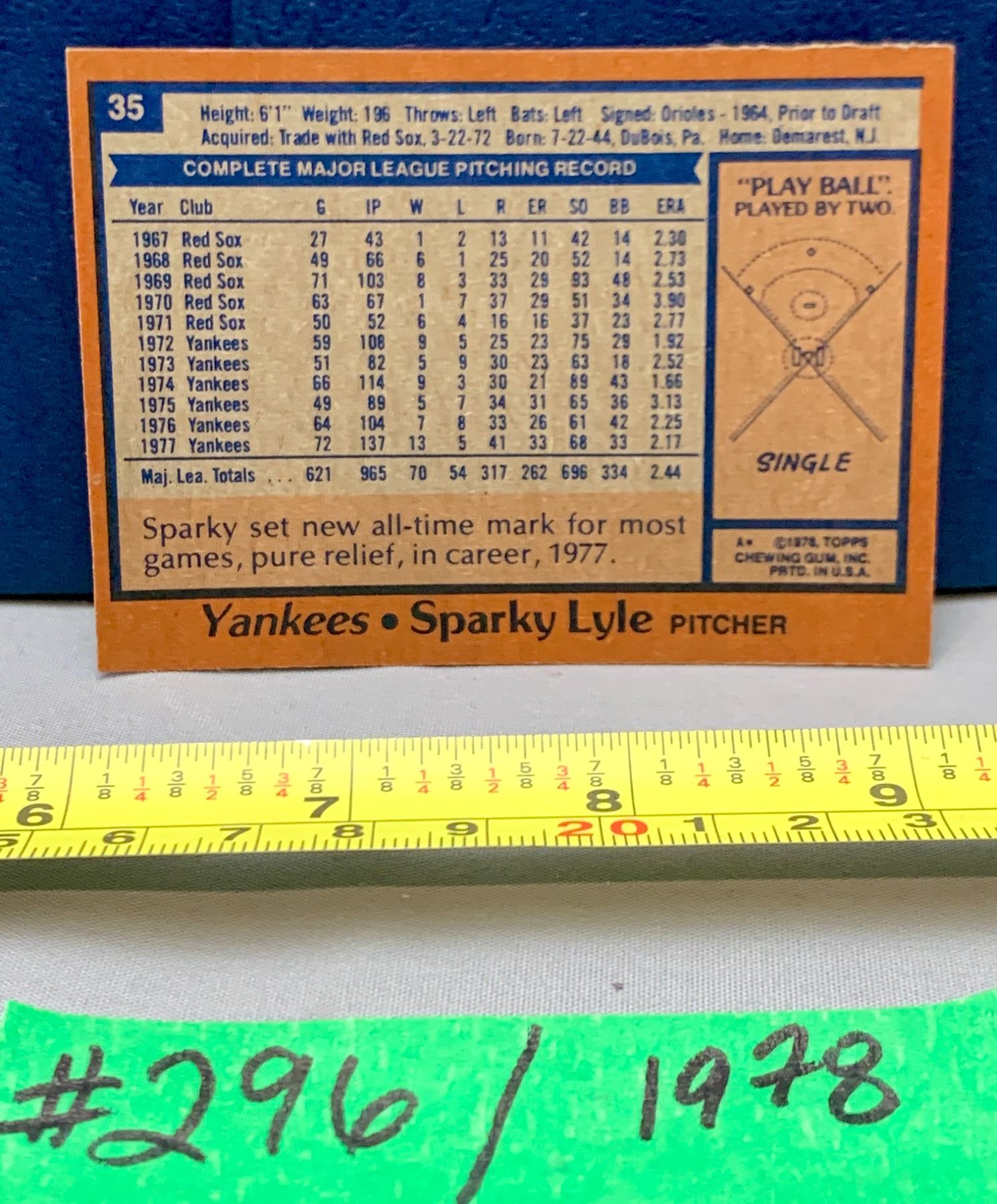 MLB Baseball Card - 1978 Vintage Sparky Lyle #35