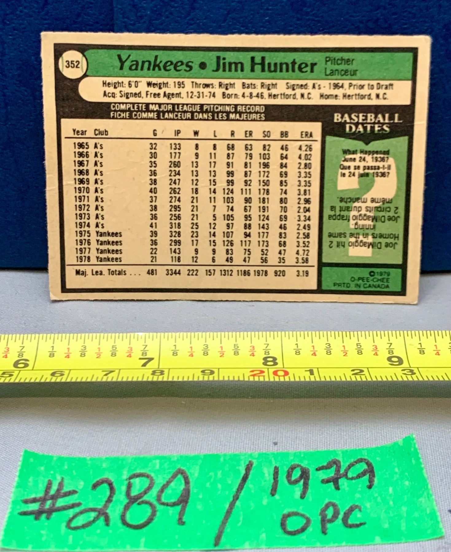 MLB Baseball Card - 1979 OPC Vintage Jim "Catfish" Hunter #352